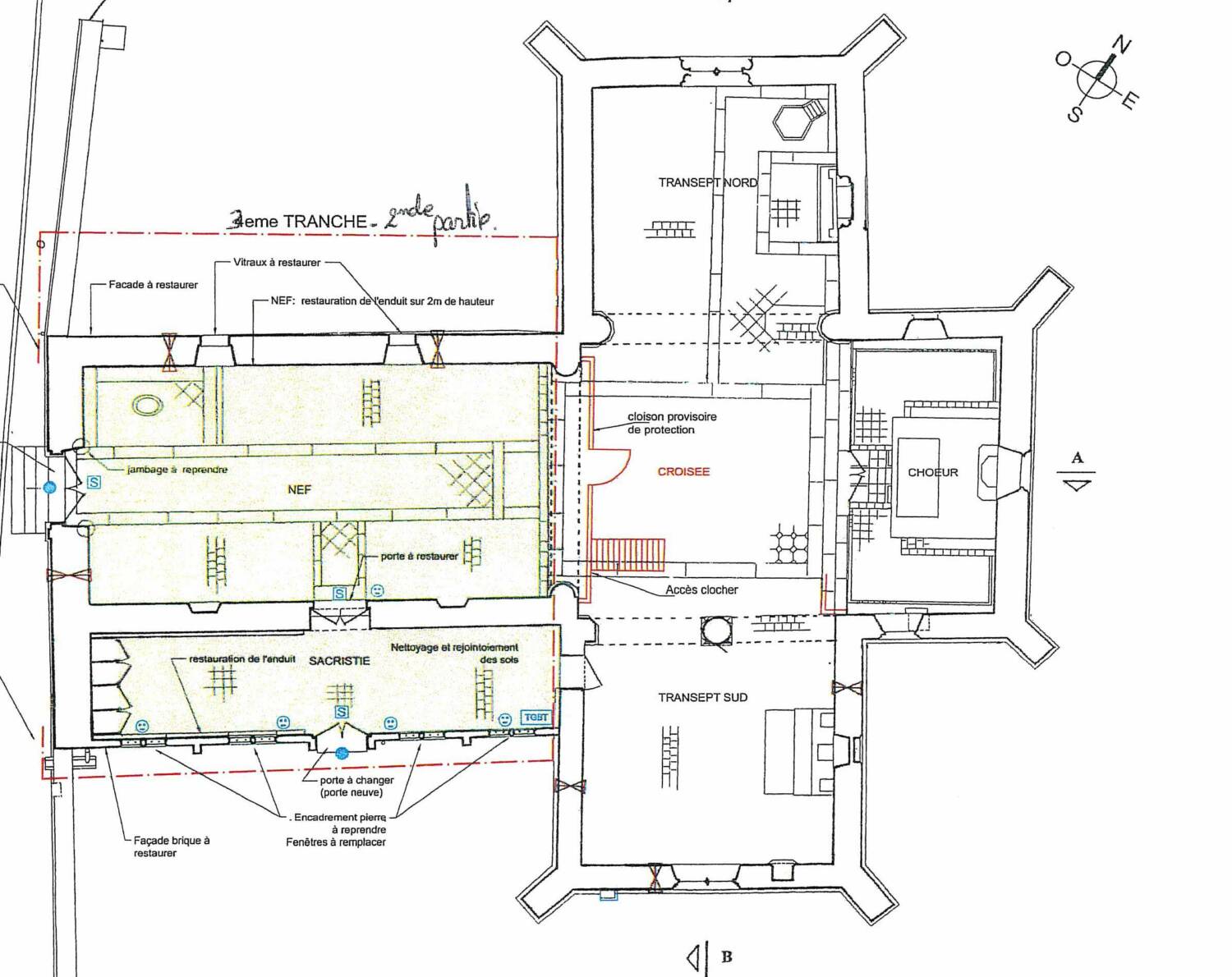 La charpente de la nef, avant sa restauration, était traitée dans les mêmes conditions que celle-ci ainsi que la voùte du chœur. Il en résultait un ensemble décoratif de l’art de la charpenterie des plus intéressants, et méritant certainement d’être conservé.
