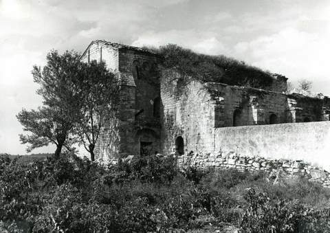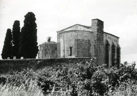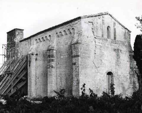 L’église offre sur sa façade, ses murs goutterots et son chevet, de vieux décors de plates-bandes, de festons et de dents d’engrenages, hérités du premier art roman méridional. Cependant la qualité de l’appareil, la mouluration des consoles de l’arcature et, surtout, le caractère des sujets sculptés sur les chapiteaux des pilastres à l’intérieur, indiquent que la construction n’est pas antérieure au premier tiers du xiie s. On y voit, figurés assez naïvement, mais avec un effort pour faire émerger les volumes, des animaux familiers : coq, poules, chien, lièvre, cheval, etc., témoignage touchant des attaches du sculpteur avec le monde rural, auquel était destiné ce prieuré campagnard. La nef unique, de trois travées, a été agrandie à la fin du xiie, ou au siècle suivant, au moyen d’une seconde nef plus réduite, accolée au flanc sud. Celle-ci présentait autrefois un mode de couvrement fort curieux : de simples dalles posées sur une série d’arcs non jointifs, procédé emprunté aux monuments antiques, comme l’atteste, non loin de là, le Temple de Diane à Nîmes.