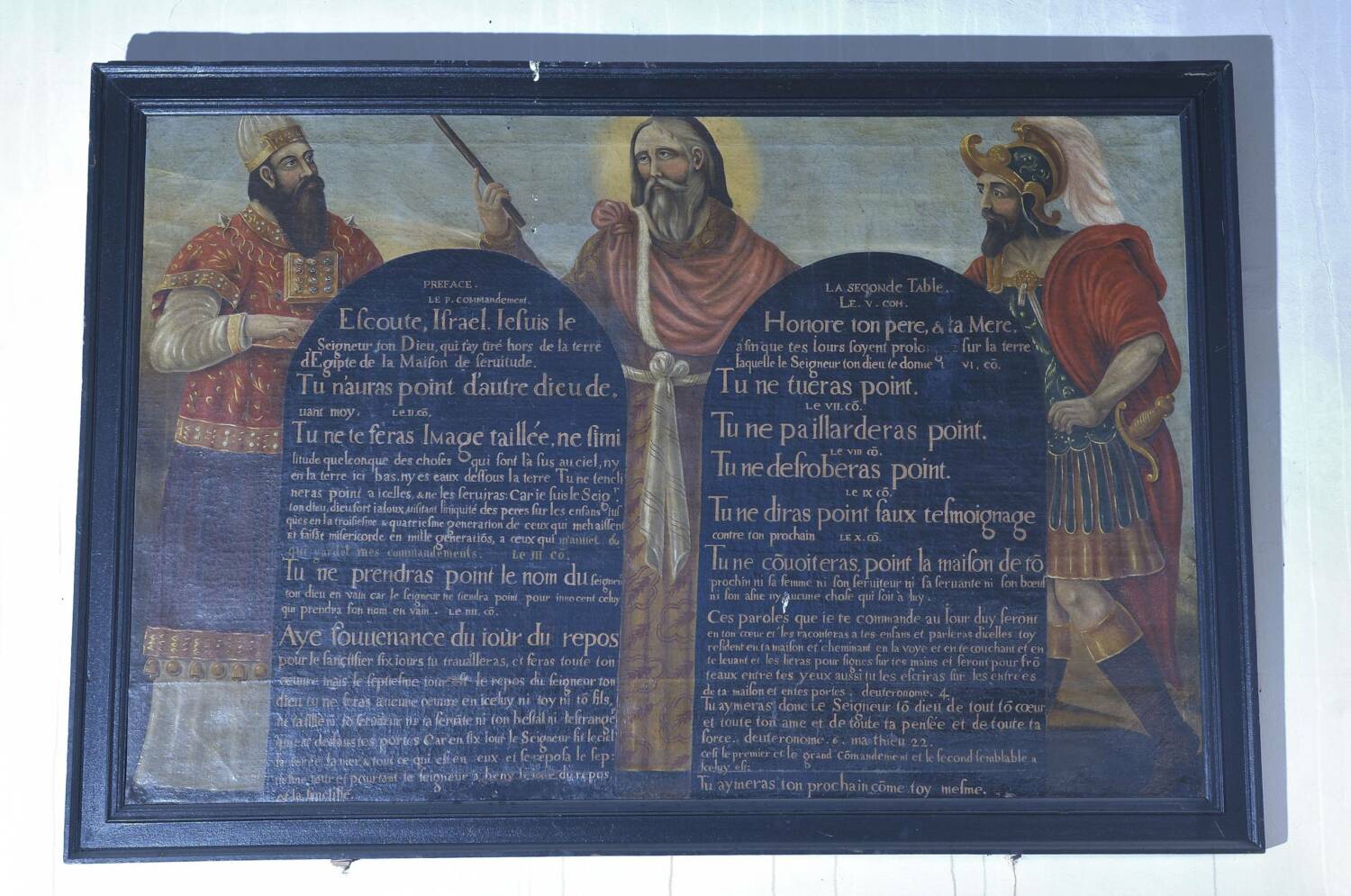 La pièce maîtresse du temple est le décalogue qu’il contient. Ce tableau, datant du XVIIe siècle, représente les dix commandements gravés sur deux stèles et donnés par trois personnages de l’Ancien Testament : Moïse au centre, Aaron à gauche et Josué à droite. Preuve de son ancienneté, les textes sont rédigés en ancien français. Ce type d’œuvre d’art est extrêmement rare puisqu’en principe les protestants n’acceptent pas d’œuvres d’art dans leurs temples. En France, il n’existe qu’une dizaine d’œuvres de ce genre. Preuve de sa qualité, elle est en cours d’inscription au titre des monuments historiques.