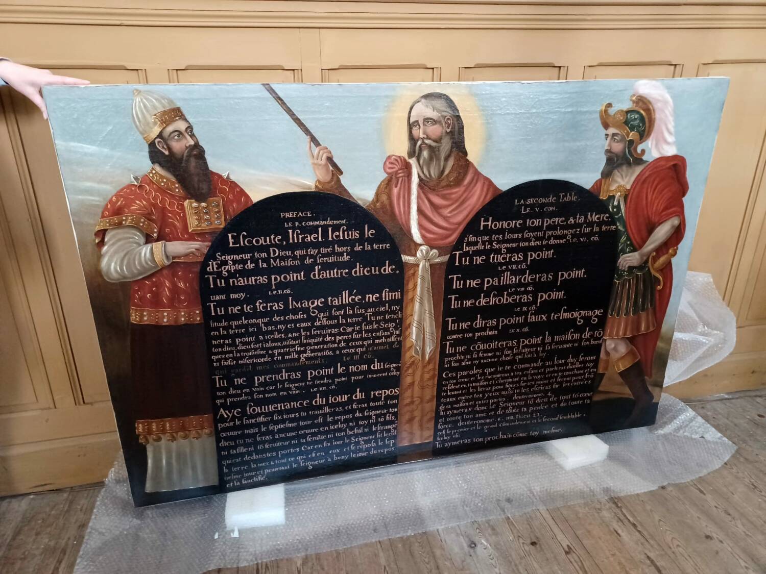 Cette œuvre, rarissime, avait absolument besoin d’une restauration pour être transmise aux générations futures. Le tableau nécessitait une consolidation ou la réalisation d’un châssis neuf, un nettoyage du vernis, jauni par le temps et la reprise de quelques mauvais repeints. Après un dépoussiérage, la toile a été remise sous tension, et les restaurations précédentes supprimées. La couche picturale a été refixée au support textile, et son vernis a été changé.