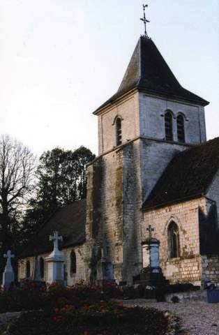 L’édifice actuel remonte, au plus tôt, au XVe siècle. Construit en pierre blanche du pays, couvert d’ardoises sur la nef et de tuiles sur le chœur, il comporte une nef de quatre travées, suivie d’une tour centrale dont le rez-de-chaussée forme avant chœur, et d’un chœur à chevet plat. Une sacristie en brique, ajoutée au XIXe s., s’appuie contre le chevet. Le chœur est la partie la plus ancienne. Sa date figurait dans une inscription en caractères gothiques, sculptée en relief sur là gorge de l’archivolte de la fenêtre sud ; il n’en subsiste que le millésime. Le chœur est voûté sur croisées d’ogives dont les nervures retombent sur des culots feuillagés ; l’arc qui sépare le chœur de l’abside repose sur des chapiteaux qui somment des colonnes engagées. La tour, qui présente au rez-de-chaussée les mêmes caractéristiques que le chœur, semble contemporaine, mais le niveau supérieur a été rebâti en 1886.