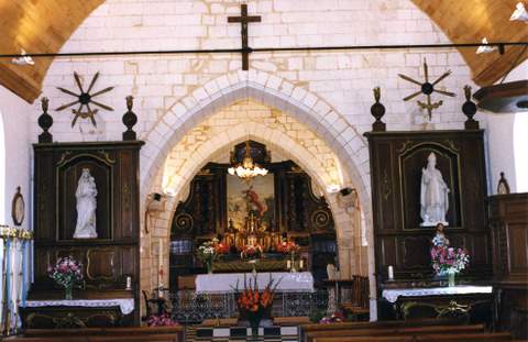 L’édifice recèle quelques pièces de mobilier remarquables. Le maître-autel est doté d’un tabernacle à ailerons et d’un retable architecturé du XVIIe s., richement ornés. La cloche, fondue en 1497 par François de Montfort, est une des plus anciennes et des plus belles de la contrée.