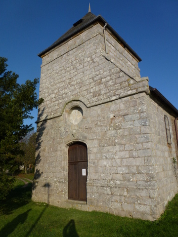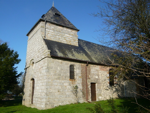 Elle se trouve aujourd’hui dans un simple hameau, caché au milieu des haies vives, au détour d’un chemin, dans un enclos étonnamment perché sur un tertre au milieu de ce plat pays de Caux. L’église et son cimetière sont en effet entourés d’un mur en belles assises de grès, couronnées d’un chaperon. Alentour de l’édifice ont poussé de grands ifs, dissimulant aujourd’hui en partie le sanctuaire. Si la chapelle est d’une architecture très sobre, la croix de cimetière, posée sur une large base octogonale à flacons soulignée d’une cordelière, tranche par la richesse exceptionnelle de son décor. Le fût est couvert de sculptures en faible relief, évoquant la Passion du Christ : on y reconnaît le coq du reniement de saint Pierre et la lanterne éclairant la scène, l’épée qui trancha l’oreille de Malchus, la colonne de la Flagellation, le visage du Christ apparaissant sur le voile de Véronique, puis les instruments de la Crucifixion, l’éponge imbibée de vinaigre, la lance, et l’échelle de la Descente de croix. La partie sommitale, donc la croix proprement dite, a disparu. Si l’auteur reste inconnu, la date de 1530 se détache sur le socle.