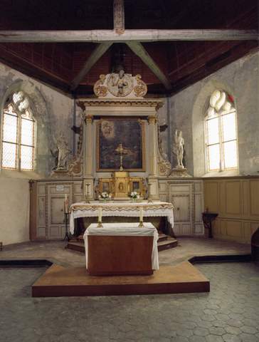 La grande simplicité de l’architecture est compensée par la relative richesse du mobilier. Les statues en pierre de la fin du XVe s. représentant sainte Barbe, un religieux dépourvu d’attribut et deux anges de la même époque constituent un bel exemple de la sculpture gothique, privé cependant des deux anges achetés au début du XXe s. pour le Louvre où ils sont aujourd’hui présentés.