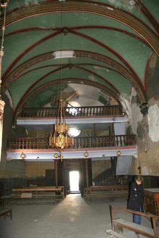 La présentation actuelle de l’intérieur de l’édifice résulte d’une importante campagne de travaux qui eut lieu vers 1872. Remplaçant peut-être un lambris en forme de ciel étoilé, on établit quatre travées de voûtes d’arêtes en briques hourdées au plâtre, enduites et peintes ainsi que les murs de la nef. Cette décoration polychrome est à base d’ornements géométriques, faux appareils, et floraux, d’une qualité moyenne. La clé de voûte du sanctuaire représente une Vierge des Douleurs, avec les sept glaives. Toutefois, on perçoit encore l’aménagement antérieur dont subsistent les deux tribunes superposées au fond de la nef, selon un usage courant dans les Pyrénées, ainsi que le grand retable du sanctuaire et plusieurs ensembles menuisés : le tambour de la porte, deux confessionnaux situés dans les chapelles latérales (dédiées à sainte Anne et à saint Joseph) ; ces trois ouvrages sont d’un élégant dessin chantourné d’esprit rocaille. Une belle chaire galbée du XVIIIe s. a son abat-son sommé d’un ange à la trompette, suivant l’iconographie classique.