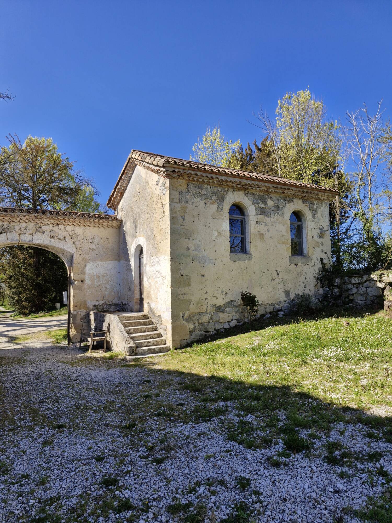 La chapelle Saint-Martin se compose d’un plan rectangulaire simple et est percée de deux baies sur sa façade sud. Il ne reste rien de son décor ni de son mobilier d’origine. Elle fait partie d’une commanderie fondée au début du XVIᵉ siècle par Guillaume Cellérier pour le prieuré de Nérac, qui devint alors un centre religieux et viticole géré par des moines. Au milieu du XVIᵉ siècle, elle fut expropriée lors de l’essor du protestantisme à Nérac et passa entre différentes mains, avant d’être remaniée à la fin du XVIIIᵉ siècle par la famille catholique des Caucabanes, qui modernisa les bâtiments et créa un parc à l’anglaise. Au fil des siècles, la propriété connut plusieurs propriétaires et alterna périodes de prospérité et d’abandon progressif au XXᵉ siècle, jusqu’à ce qu’un incendie en 1975 détruise le château et ses trésors accumulés depuis plus de quatre siècles.