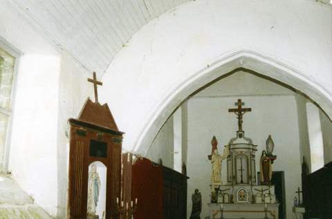 L’église de Séricourt, située à la périphérie du village, adossée au flanc d’une vallée encaissée et boisée, se dresse au centre d’un petit cimetière. Elle a sans doute été élevée à la fin du XVIIème ou au début du XVIIIème siècle. De dimensions modestes, 16 m sur 6,50 m, elle se compose d’une nef unique couverte d’une charpente lambrissée et d’un chœur plus étroit terminé par un chevet plat. La nef est épaulée par quatre contreforts. Un arc diaphragme en tiers-point sépare la nef du chœur. L’édifice est éclairé par des fenêtres légèrement surbaissées. La façade ouest aveugle est épaulée par un contrefort central surmonté d’un clocheton. L’entrée de l’église se fait par une porte latérale qui s’ouvre sur le flanc sud de la nef. Ce monument, construit en pierres blanches, témoigne de nombreuses reprises postérieures à sa construction, en moellons et en briques, ce qui lui donne un aspect hétérogène. Il renferme plusieurs objets mobiliers intéressants, en particulier une cuve baptismale monolithe octogonale dès XVème – XVIème s. , une crédence en pierre dont la table est supportée par deux colonnettes géminées, sans doute du XVème s., un retable du XVIIème s. et une statue en bois de saint Martin protégée au titre des Monuments historiques. Le lambris actuel qui couvre la nef est postérieur à la construction de l’église et à l’origine la charpente devait être apparente. Cette disposition est la cause, avec l’humidité récurrente, d’une partie des désordres présentés par cet édifice. Au moment de la mise en place du lambris, les entraits de la charpente ont été supprimés. Des poussées latérales ont alors rejeté les pannes et les sablières vers l’extérieur et la charpente s’est affaissée. Ce phénomène a entraîné en outre le dévers des murs gouttereaux, en particulier celui du mur sud, et des fissures dans l’arc diaphragme. Cet édifice demandait donc une restauration urgente. C’est pourquoi la Sauvegarde de l’Art Français a accordé une subvention de 30 000 F en 1995 pour la restauration de la charpente et des maçonneries extérieures de cette petite église non protégée.