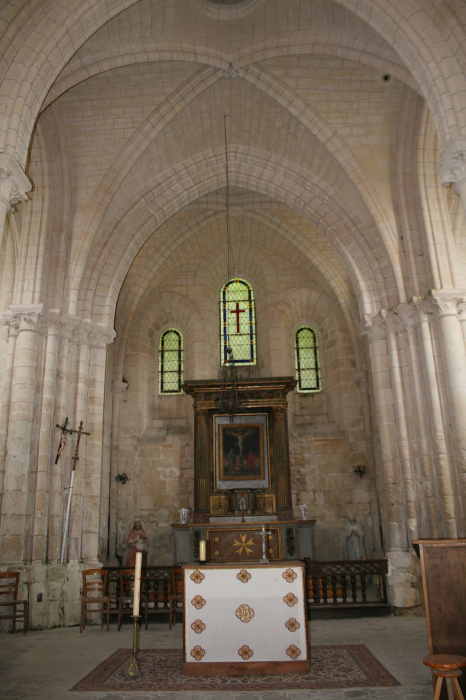 L’église Saint-Pierre et Saint-Michel se compose d’une nef unique (de 3 vaisseaux à l’origine), d’un transept débordant, d’un chœur à chevet plat, un triplet et une sacristie accolée au bras Nord du transept. La nef est plafonnée, le transept et le chœur sont voûtés en pierre sur diagonaux. L’église conserve des traces de décors peints (XIIème, XIIIème, XVIème et XVIIIème siècle).