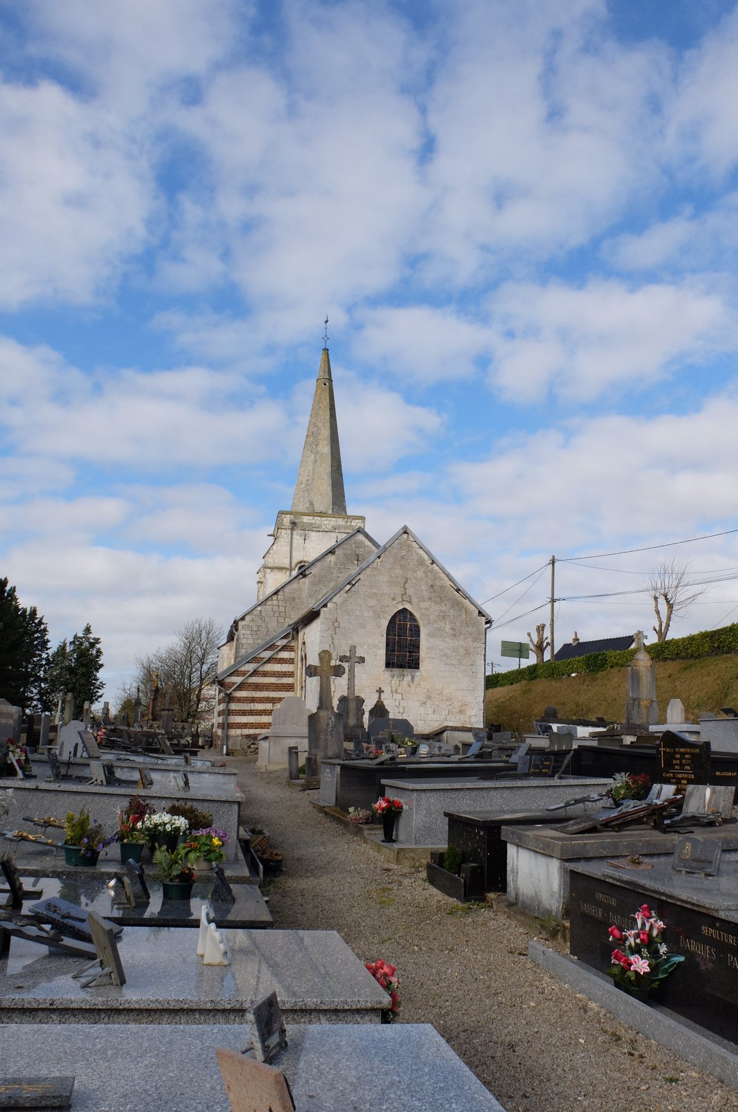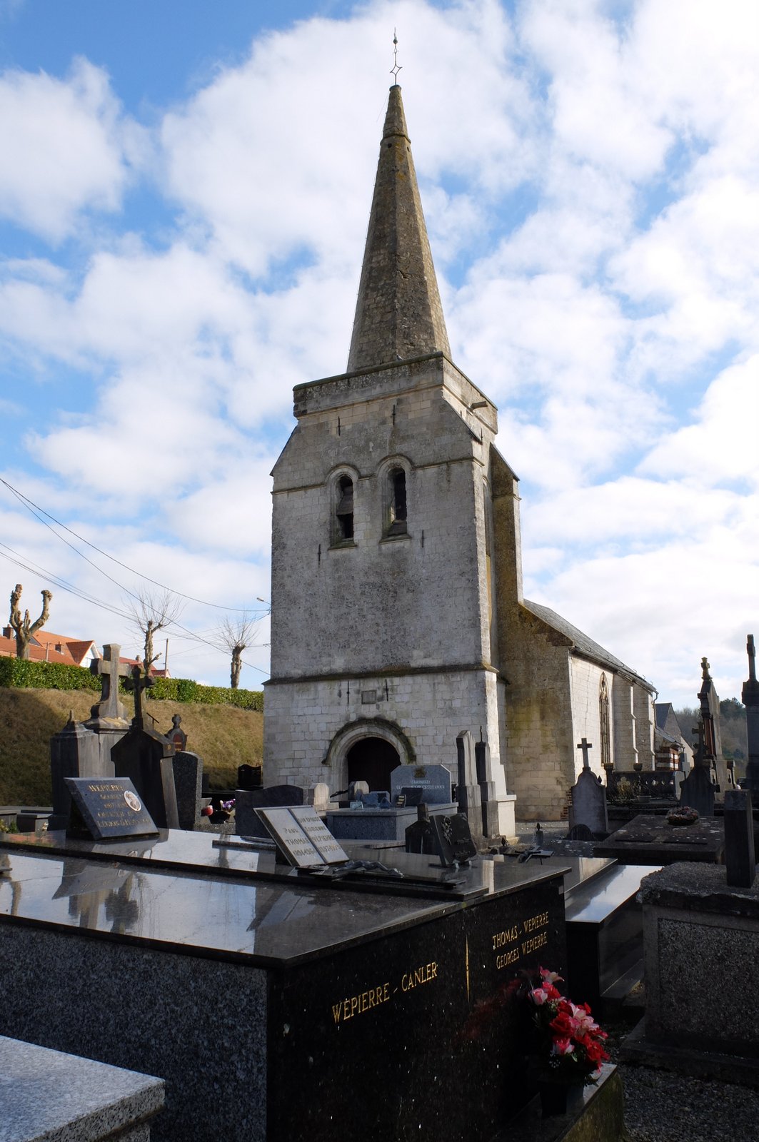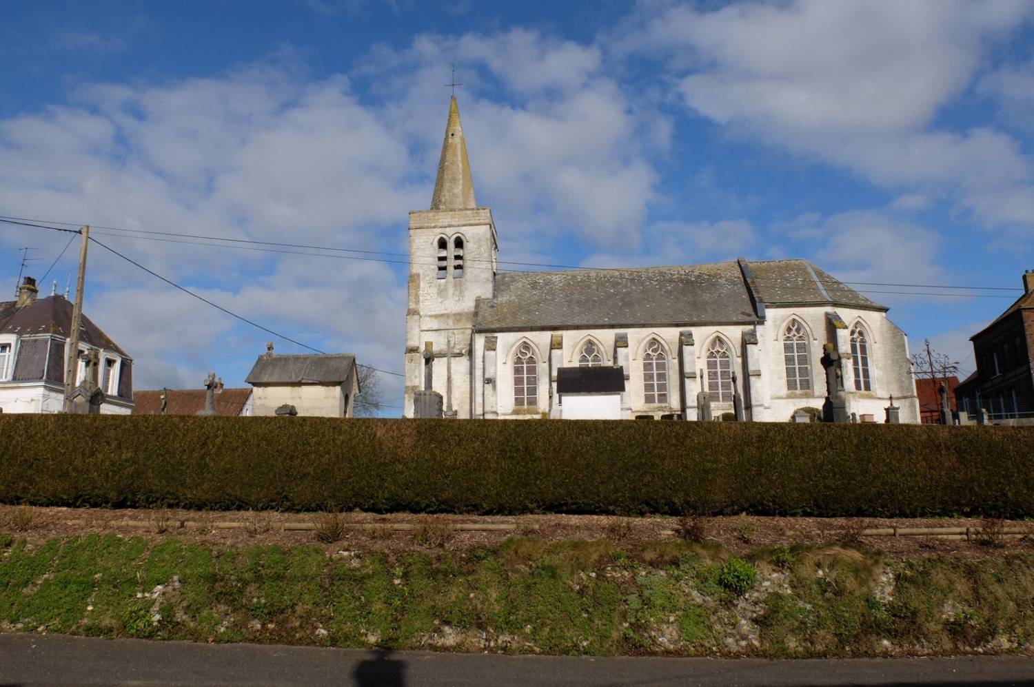 Construite en pierre semi-dure des carrières voisines d’Elnes, l’ église Saint-Omer comprend une tour-clocher de façade, une large nef de trois travées et un petit chœur. La tour de façade, surmontée d’ une flèche de pierre à crochets, est épaulée de quatre contreforts latéraux auxquels elle doit sa silhouette robuste et bien campée. Le portail, légèrement profilé en anse de panier et souligné par une archivolte, est de tradition gothique, mais pourrait ne remonter qu’au XVIIe siècle. Le chronogramme placé au-dessus indique la date de 1740 qui doit correspondre à une restauration et à la reconstruction de la flèche.