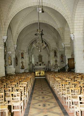 Donnée vers 1079 par Hugues d’Alluye III à l’abbaye de Saint Florent de Saumur, puis à Marmoutier qui y fonda un prieuré, l’église Saint-Genest a gardé à son chevet des vestiges en petit appareil de cette époque. Le pignon de la façade occidentale est sans doute un peu plus récent. Le beau portail roman présente un grand arc en plein cintre bichrome abritant un autre arc mouluré d ‘un tore qui retombe sur des colonnettes aux chapiteaux très abîmés. L’entrée dans l’église s’effectue par une porte plus récente en arc brisé et chapiteaux à crochets. Au nord s’élève le clocher, tour carrée de quatre étages ajourée sur chaque face de doubles baies en plein cintre, surmonté d’une flèche en charpente. L’ensemble est accompagné d’une tourelle d’escalier couronnée par une galerie circulaire, sous un petit dôme. La nef de cinq travées est flanquée au nord par un collatéral datant, comme elle, du XVIe s. Leurs voûtes ont été refaites. La nef débouche sur un chœur carré, voûté d ‘ogives, qu’un gros doubleau sépare de l’abside romane, semi-circulaire, voûtée en cul-de-four et éclairée par trois fenêtres en plein cintre. Au sud de la cinquième travée de la nef s’ouvre une chapelle du XIIe s. qui sert de sacristie. Un vitrail de 1545 figurant L’Annonciation avec le donateur présenté par saint Jacques est classé Monument historique ainsi qu’une statue de pierre représentant sainte Marie-Madeleine, de la fin du XVe s. et une cloche de 1629. La Sauvegarde de l’Art Français a participé pour 70 000 F en 1992 à la réfection complète de la char pente, de la couverture et des corniches .