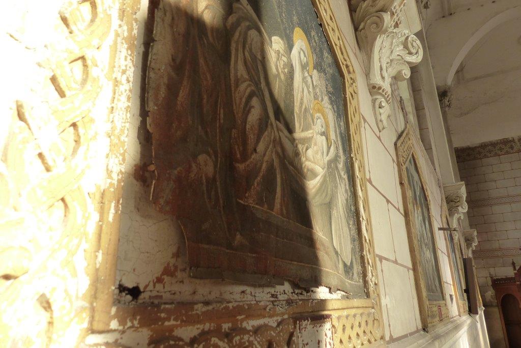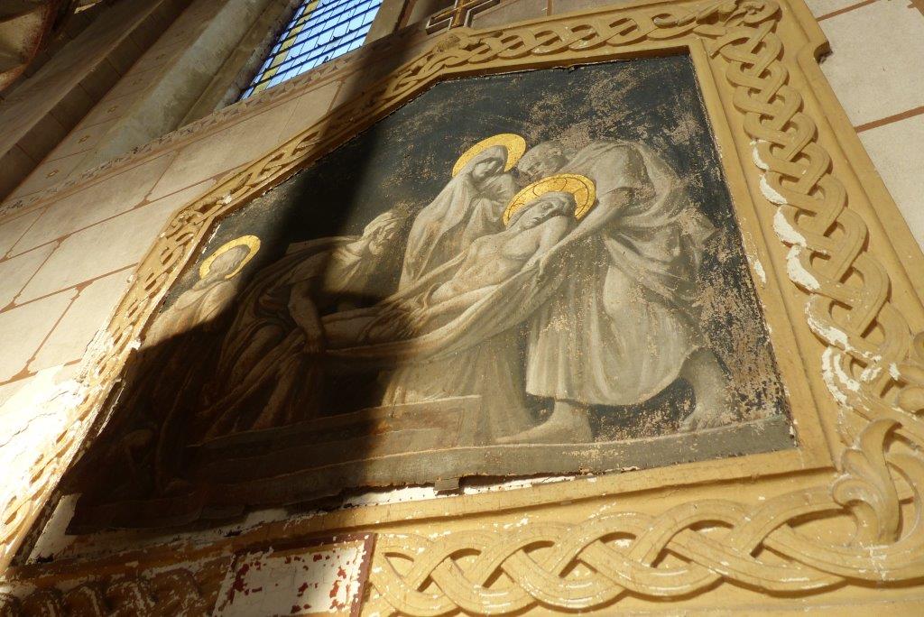 Henri Pinta réalisa en 1925 un chemin de croix composé de quatorze stations pour la commune d’Hoéville. Ces œuvres se trouvent désormais conservées dans de l’église Saint-Nicolas. Celle que nous souhaitons faire restaurer est la quatorzième station, la plus proche du chœur.