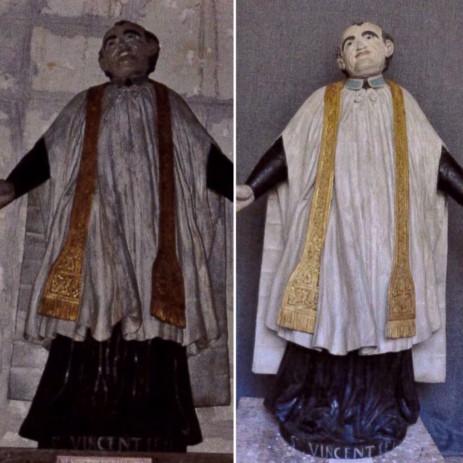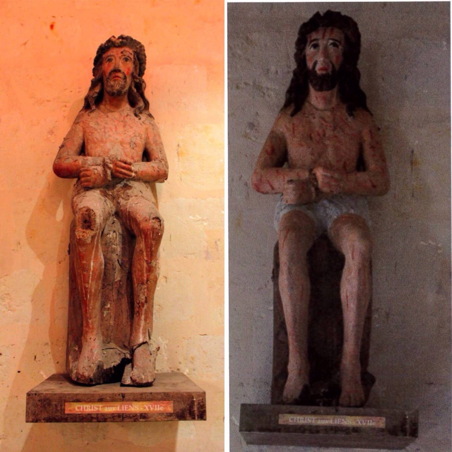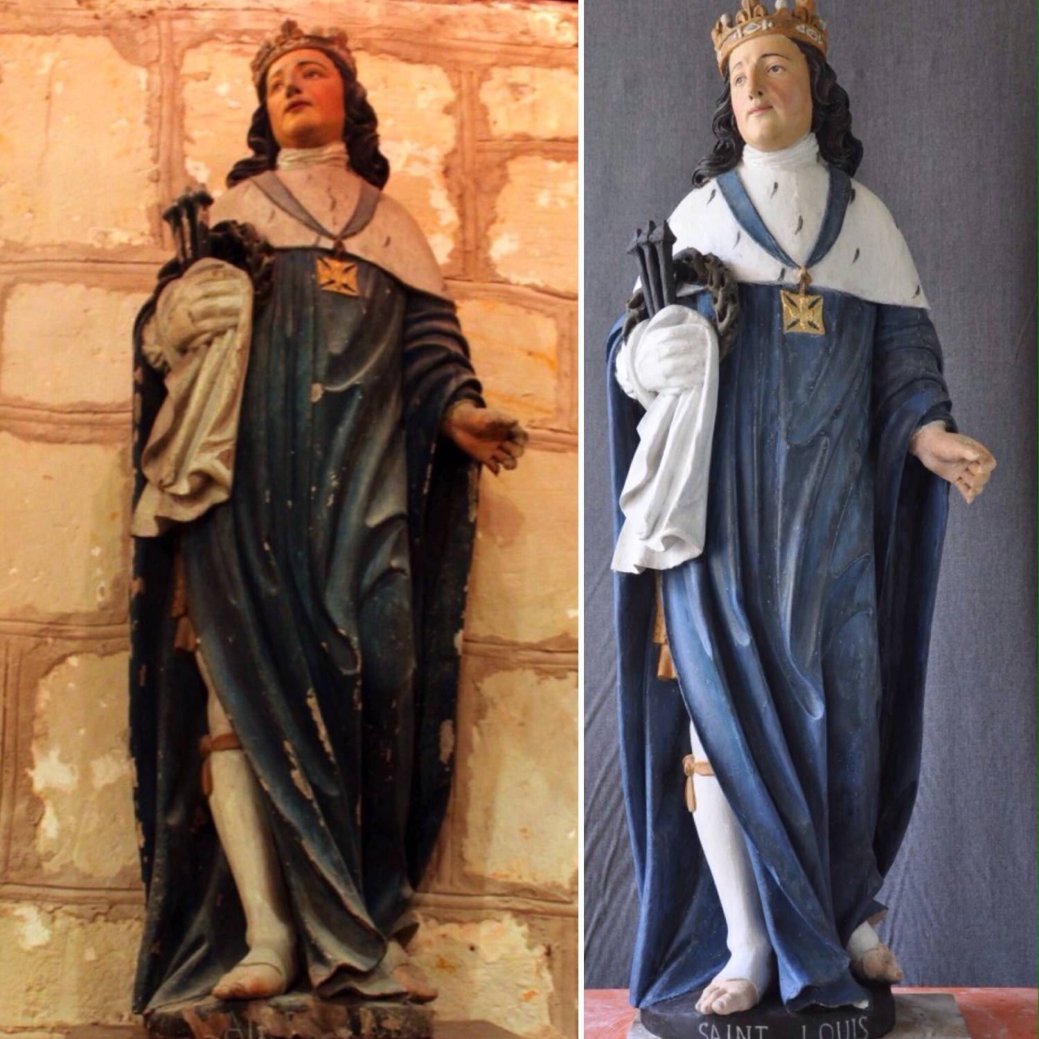 Sur les 25 statues en bois, M. Vacquet, conservateur des antiquité et d’objets d’art en Maine-et-Loire avait indiqué qu’il fallait en restaurer 23. Entre octobre 2012 et janvier 2013, les 6 statues ont été restaurées. Les bois ont été traités, des retouches effectuées et grâce à un nettoyage délicat, la polychromie a retrouvé son éclat. En 2013, dans le cadre de la mission, de jeunes artistes sont venus de toute la France pour apporter leur concours à ce projet; un concert et une pièce de théâtre ont permis de réunir les fonds pour restaurer une statue. 11 statues attendaient encore de recevoir les soins qui les préservent aujourd’hui du temps.
