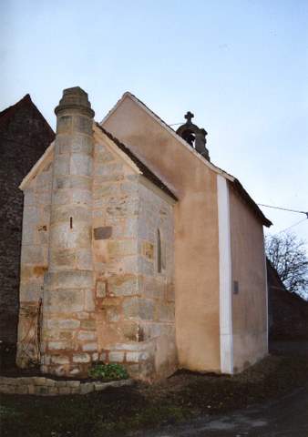 Édifiée vraisemblablement entre les années 1630-1720, lors de la grande peste qui affecta la région autunoise, et dédiée à saint Roch, la chapelle de Morgelle est un édifice de taille très modeste. Elle est formée d’une nef de plan carré de quatre mètres de côté, d’un chœur plus étroit prolongé dans son axe par une curieuse colonne engagée. Ce volume cylindrique accolé au pignon sud-est dépasse le faîtage du comble ; il est couronné par un socle délimité par une corniche moulurée, de même profil en doucine que celle qui termine les faces latérales. Il semble que ce volume n’ait eu aucune autre utilité que de servir de socle à une statue. Si le style gothique de l’ensemble permet de dater les maçonneries du chœur du XIXe s., une datation aussi récente pour la disposition axiale n’en demeure pas moins étrange. Nous pourrions tout au plus estimer que ses maçonneries proviennent du réemploi d’une construction médiévale, peut-être celle d’une souche de cheminée. L’axe de l’édifice est orienté nord-ouest, sud-est. La nef et le chœur sont couverts d’une toiture de tuiles plates à deux pans. L’ordonnance de la façade se compose d’une ouverture dont l’a rc est légèrement surbaissé, surmontée d’une fenêtre en plein cintre et cantonnée de deux fenêtres plus grandes, elles aussi en plein cintre. Un cordon en fort relief sépare la façade du mur-pignon, surmonté d’un clocher à arcade qui possède encore sa cloche. La porte axiale en anse de panier comporte comme seule décoration une clé saillante et deux sommiers ; elle est assez large pour être munie d’un huis à deux vantaux. Couverte intérieurement par un plafond plâtré, la nef est construite en maçonnerie de moellons irréguliers. Les chaînes d’angle, les encadrements de baies, la corniche et le clocheton sont en pierre de taille. L’ensemble paraît avoir été enduit dès l’origine ; les chaînes d’angle et l’encadrement non saillant des fenêtres sont soulignés par un enduit lissé recouvert d’un badigeon à la chaux de ton clair. Le style de cette partie de l’édifice permet de dater la construction des dernières décennies du XVIIe siècle. Le chœur est d’une tout autre facture. Il est entièrement réalisé en pierre de taille de belle dimension. Communiquant avec la nef par un arc au profil très brisé, il est couvert d’une voûte à nervures bombée reposant sur quatre culots sculptés de feuilles à l’est, et est éclairé sur chacune des faces latérales par une petite baie en arc brisé. Dans la niche qui surmonte le maître-autel a été placée une statue de saint Roch. Une autre statue (saint Hubert?) a été placée sur une console, sur le mur nord. La Sauvegarde de l’Art français a accordé une aide de 25 000 F pour la restauration des enduits en 1999.