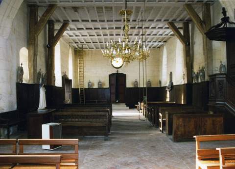 Eglise Saint-Pierre-ès-Liens. La terre de Sully aux confins de la Picardie et de la Normandie appartenait au XVIIe s. à François Jacquier, commissaire général des vivres sous Louis XIV, qui prit le nom de Vieux-Maison. Le duc de Fleury l’acquit au XVIIIe siècle. Le patronage de l’église était exercé par le chapitre de Gerberoy. Une succursale en dépendait à Ernemont. En grès et calcaire, l’église est construite sur un plan en croix latine, long de 27 mètres. La nef à vaisseau unique couvert d’un simple plafond s’étire sur trois travées inarticulées à l’intérieur comme à l’extérieur. Les piédroits et les arcs de couvrement des baies sont en brique. La dernière travée est surmontée d’un clocher en charpente, couvert d’ardoises. Les parties orientales sont plus soignées. Le transept saillant et le chœur sont en effet voûtés d’ogives surbaissées retombant sans discontinuité sur des piliers fasciculés de mêmes profils. Des contreforts talutés au sommet épaulent la construction. Les baies sont simples dans le transept et composées dans l’abside polygonale. Le tracé des remplages où dominent les formes ovales indiquent une date d’exécution assez avancée dans le XVIe s., vers 1540 au plus tôt. L’église conserve des fonts baptismaux du XIIIe s. à cuve hémisphérique sommée d’un couvercle carré dont les angles sont soulagés par des colonnettes à chapiteaux ornés de feuilles lisses. Un bel ensemble de boiseries du XVIIIe s. tapisse les murs du chœur et du transept. La Sauvegarde de l’Art français a accordé une subvention de 30 000 F en 1999 pour la restauration du clocher dont le voligeage et la couverture d’ardoises ont été refaits.