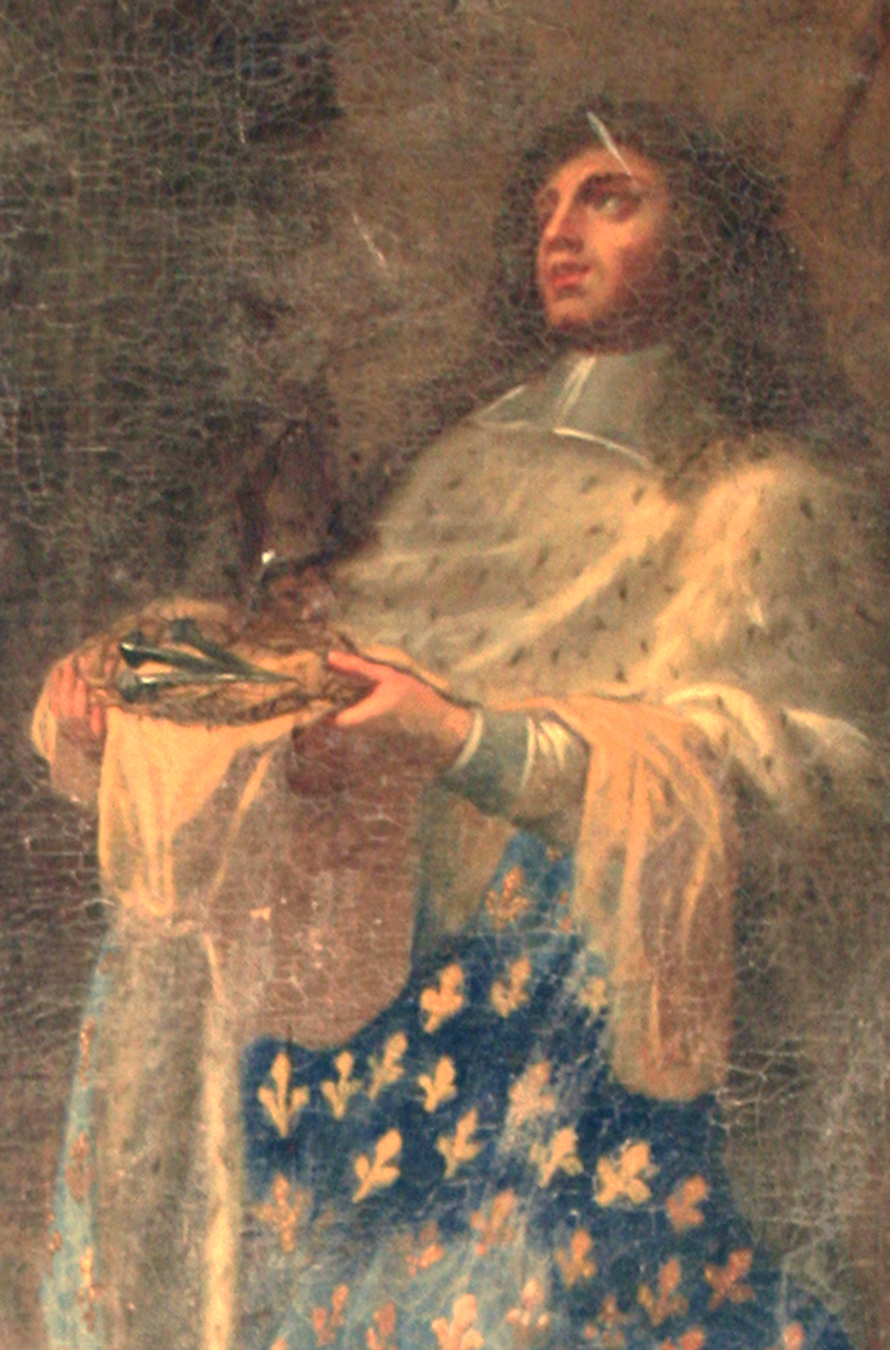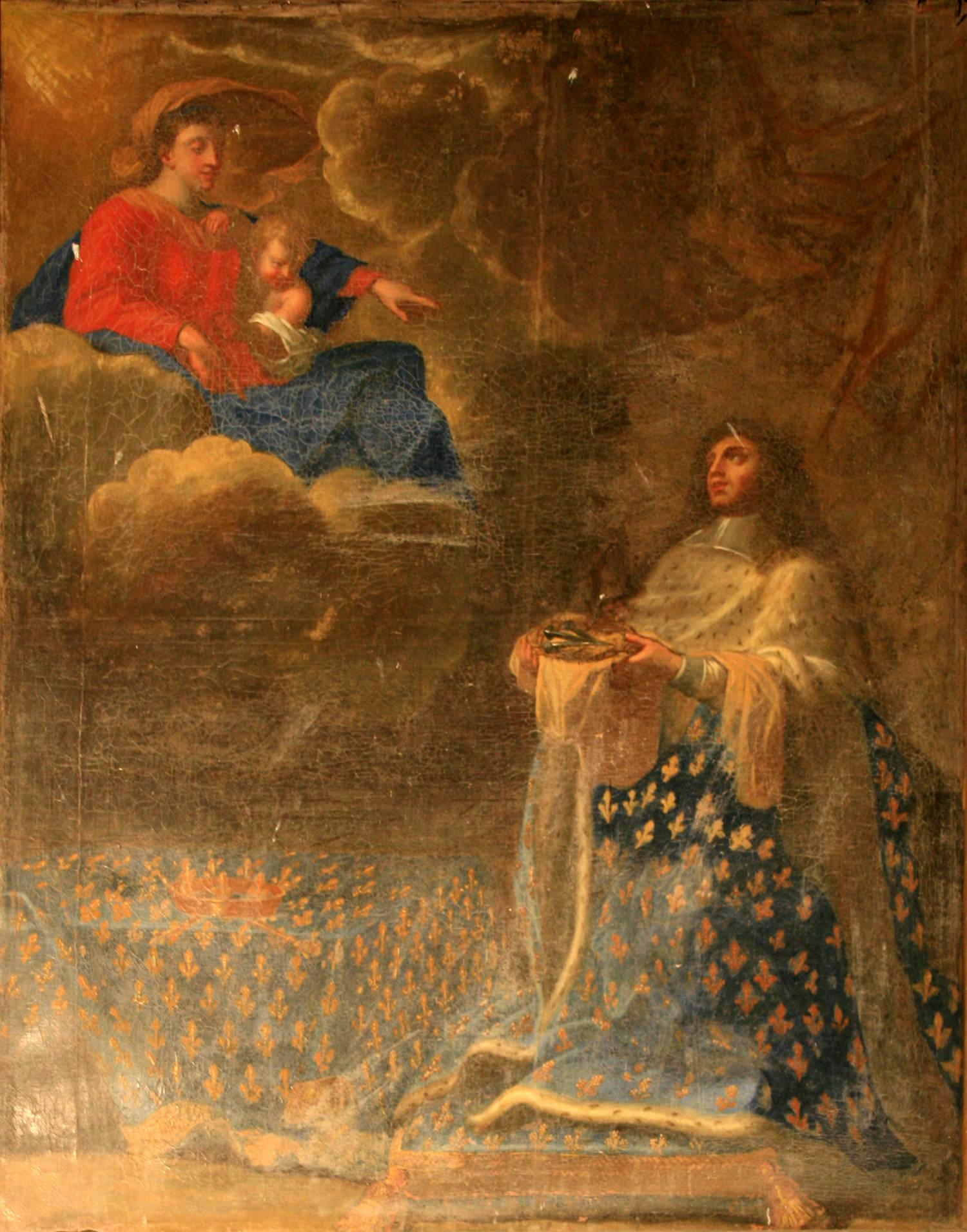 S’agit-il du Vœu de Louis XIII ? Ou bien serait-ce Louis XIV présentant à la Vierge les Instruments de la Passion ? Stéphane Loire opte pour l’hypothèse selon laquelle le tableau représente saint Louis en souverain régnant, identifiable par la couronne d’épines et les clous de la Passion qui sont ses attributs.