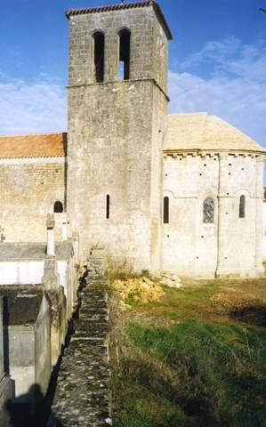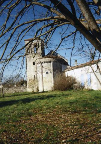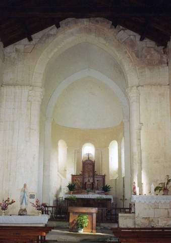 La façade de cette église romane, simple mur à pignon en petit appareil, est austère : au-dessus de la porte dont le plein cintre, surmonté d’un mince cordon sculpté en larmier est encadré de trois tores, s’ouvre une simple baie ébrasée et dénuée d’ornements. A l’intérieur, la charpente qui couvre la nef contraste avec la blancheur de l’enduit de la voûte du chœur et de l’ abside en cul-de-four. A l’entrée du chœur, surélevé de trois marches, l’arc triomphal ne manque pas de grandeur ; les deux colonnes engagées qui le portent ont chacune un chapiteau historié.