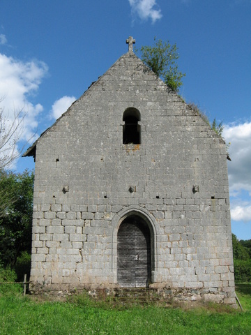 La façade seule est en pierre d’appareil. La porte en arc brisé orné d’un tore est précédée d’une marche. Trois corbeaux à masques humains très usés évoquent peut-être la trace d’un auvent disparu. À la base du triangle aigu qui sert de pignon, que couronne une croix chanfreinée, a été ouverte tardivement une petite baie cintrée. Les fondations de cette chapelle sont un peu déchaussées. Une longue fissure court le long de l’angle nord-ouest de la nef. Hormis la façade, les autres murs sont construits en moellons et briques, avec des remplois d’appareil de granit dans les angles. L’usage agricole donné un temps à ce monument avait nécessité l’ouverture d’une porte charretière dans la moitié orientale du gouttereau sud de la nef, entraînant la mutilation d’une fenêtre. La restauration récente a fait disparaître ces désordres.