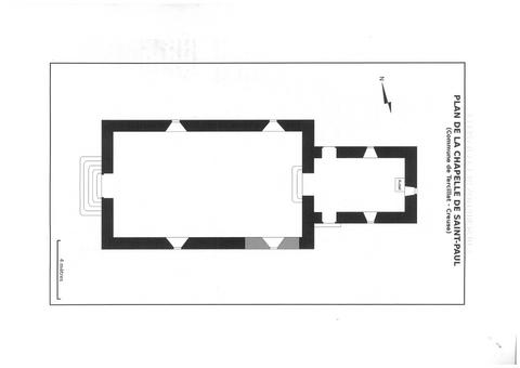 LA CHAPELLE SAINT-PAUL se trouve dans un lieu-dit de la commune de Tercillat (Creuse), à la limite nord de ce département et de celui du Cher. Elle est située à 1,5 km à l’ouest du bourg sur une légère éminence, près d’un croisement de deux voies : un axe nord-sud qui reliait Châtelus-Malvaleix en Marche à La Châtre en Berry, et un autre, orienté est-ouest, qui joint Boussac à Aigurande (actuelle D 2). Tercillat a toujours fait partie du diocèse de Limoges. Saint-Paul, sous l’Ancien Régime, dépendait du duché, puis de la généralité de Berry. Il relevait au spirituel du diocèse de Limoges depuis le XIe s., mais une charte (entre 1052 et 1063) donna ce prieuré à l’abbaye berrichonne de Déols.
