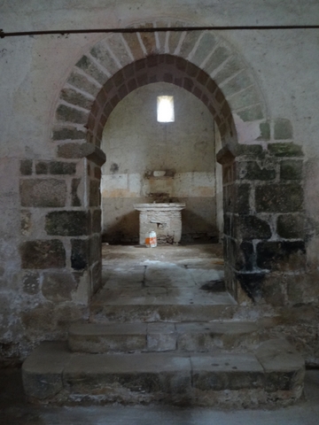L’ensemble du bâtiment comprend une nef rectangulaire de 13,40 m sur 6,90 m couverte d’un lambris cintré enduit, prolongée d’un chœur plus étroit également rectangulaire et lambrissé, surélevé de deux marches, mesurant 6,90 m de long sur 5,70 m de large, qu’un passage en arc brisé surbaissé, large d’1,50 m, fait communiquer avec la nef. Un massif autel de pierre sans décor est adossé à la paroi orientale aveugle. Nef et chœur sont couverts d’une charpente à entraits retroussés sous un toit de tuiles plates à deux pentes. Deux étroites fenêtres largement ébrasées vers l’intérieur sont percées dans chaque gouttereau de la nef, et une de chaque côté du chœur. Leur aspect extérieur coiffé d’un petit arc bombé brisé est l’indice d’une reconstruction tardive (XVIIe siècle ?).