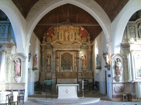 Le retable de l’autel majeur en pierre qui date du XVIIIe s., figure la Présentation de Jésus au Temple. Il est surmonté d’une statue du Christ ressuscité. Le retable de la chapelle méridionale, chapelle Sainte-Barbe, en bois et terre cuite, « peinte au naturel », est dédié à sainte Marguerite (XVII-XVIIIe s.), celui du nord, également en bois et terre cuite peinte, représente l’éducation de la Vierge par sainte Anne.