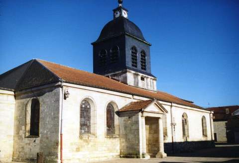 L’église présente donc maintenant un bel ensemble très homogène de ce style néo-classique très répandu dans ce quart nord-est de la France. La façade principale offre un péristyle à l’antique de quatre colonnes de style toscan supportant une corniche à triglyphes et un fronton triangulaire ; de part et d’autre, une fenêtre en plein cintre correspond aux bas-côtés. La nef centrale, couverte d’une voûte surbaissée, est séparée des bas-côtés plafonnés par des piles de six colonnes toscanes sous linteau droit ; le carré du transept est cantonné de colonnes engagées qui supportent le clocher quadrangulaire dont seul l’étage inférieur est maçonné, l’étage du beffroi étant en charpente et surmonté d’une toiture bombée et d’un lanternon. La travée droite du chœur est voûtée comme la nef et séparée de ses bas-côtés par deux colonnes et linteau droit de même style. Au fond, le sanctuaire est à chevet plat et éclairé directement par deux fenêtres en plein cintre. On notera que les passages des bas-côtés de la nef vers les chapelles qui encadrent le chœur se font par des arcs en plein cintre qui renforcent la base du clocher.