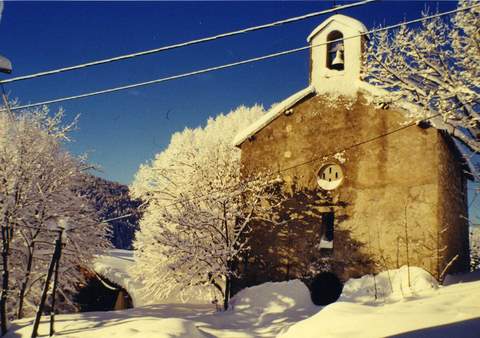 L’église, dédiée, comme il se doit sur cette hauteur, à l’archange saint Michel, est signalée dès le Xiiie siècle. Mais l’édifice actuel aurait été construit en 1750 si l’on en croit le « Questionnaire » de 1840 (Arch. dép. des Alpes-de-Haute-Provence, 2 V 78). La couverture d’origine était faite de dalles de grès provenant de la montagne voisine, le Grand Coyer, comme à Peyresc. Au milieu du XIXe s., elle fut malencontreusement remplacée par une toiture en tôle sur charpente qui nécessita de surhausser les murs gouttereaux et qui ne tarda pas à être emportée par une rafale de vent. Le tout fut remis en état en 1892-1894. Le petit clocher-arcade à baie unique fut reconstruit. Une nouvelle cloche, fondue par Reynaud à Lyon, avait été bénite le 9 août 1877.