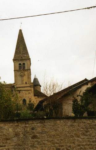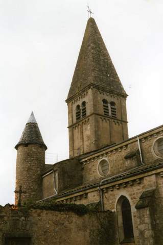 L’église de Trambly, qui s’élève au haut du bourg, se présente sous forme d’un rectangle prolongé par un transept sans saillie, d’un chœur et d’une abside hémisphérique. La nef et les bas-côtés ont été totalement reconstruits au XIXème siècle. L’abside et le clocher, tous deux inscrits à l’inventaire supplémentaire des Monuments historiques depuis le 29 octobre 1926, sont les seuls témoins d’une époque romane tardive. L’abside, voûtée en cul-de-four, a certainement subi des restaurations, en particulier au niveau des fenêtres encore fortement ébrasées mais très larges. La partie la plus intéressante de cet édifice est le clocher qui s’élève au-dessus de la croisée du transept. De plan carré, il est constitué de deux étages encadrés de bandes lombardes. Sous la flèche en pierre, une corniche saillante est ornée de motifs en pointe de diamant. Le second étage est percé sur chaque face de baies en plein cintre géminées, séparées par une colonnette à chapiteau sculpté. Une tourelle d’escalier cylindrique détachée du clocher en permet l’accès. Elle est couverte en poivrière.