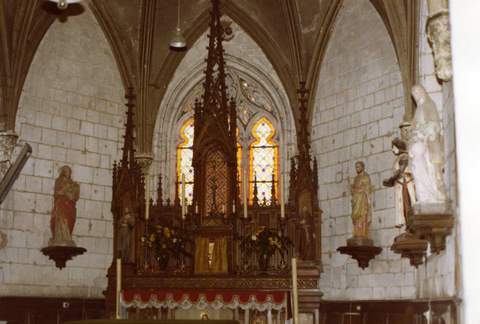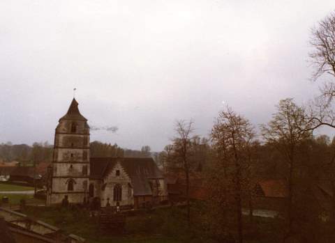 Eglise paroissiale Saint-Léonard, à nef unique et à vaste transept, de 26 mètres de longueur. Elle remonte à la fin du Moyen-Âge. Sa partie la plus originale est un clocher aux proportions massives et au décor flamboyant, aussi bien fait pour recevoir les cloches que pour la défense, dans une région où les guerres furent nombreuses. On remarque à l’intérieur de l’église, outre un certain nombre de pierres tombales, des fonts baptismaux du XIIème siècle, assez bien conservés.