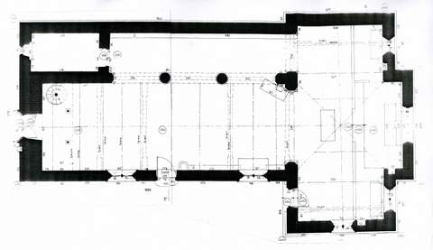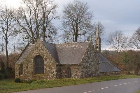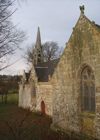 L’édifice actuel date de la seconde moitié du xve s. et du début du xvie siècle : en témoignent la base des piédroits de la porte occidentale et de la porte ouest du bras sud du transept (dont la forme est commune à la fin du Moyen Âge), le remplage en forme de fleur de lys de la baie du bras sud du transept et les armoiries qui subsistent dans les restes de la verrière de cette même baie. La fleur de lys est un rappel des mariages successifs de la duchesse Anne de Bretagne avec les rois de France Charles VIII et Louis XII et les armoiries de la verrière sont celles d’Yvon (ou Even) de Kerguz et de Catherine de Tréanna (qui vivaient au milieu du xve s.), celles de leur petit-fils, Olivier de Kerguz (docteur en droit, qui vivait dans le premier quart du xvie s.), ainsi que celles de sa femme Jeanne de Kergoët, dame de Kerstang.