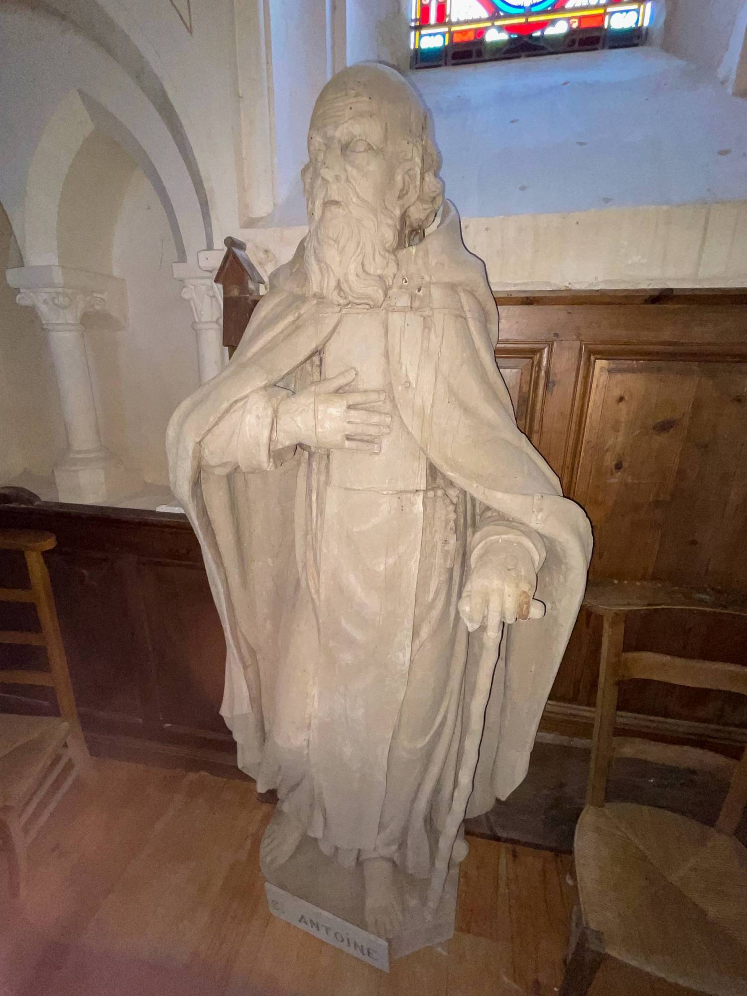 Parmi les différentes pièces qui composent son mobilier, on trouve 3 statues particulièrement intéressantes, représentant saint Antoine, saints Cyr et sainte Julitte et la Compassion du Père. Saint Antoine, ermite du Ive siècle, est reconnaissable à ses vêtements et à son bâton en forme de tau. Julitte vivait avec Cyr, son petit garçon âgé de 5 ans, au IVe siècle, ils furent martyrisés pour avoir proclamé leur foi. Enfin, la dernière statue représente « Dieu le père » recevant le corps du Christ, à peine décroché de la croix.