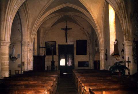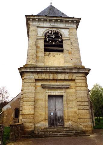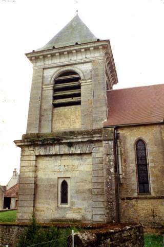 L’église fut remaniée aux XVIème et XVIIIème siècles. A l’origine, elle se composait d’une nef gothique de quatre travées, d’une chapelle en hors-d’œuvre au sud de la nef et d’un chœur à chevet plat. Au XVIème s., on bâtie une chapelle seigneuriale au nord de la nef. Le chœur primitif fut démoli en 1773 et un clocher-porche de style néo-classique construit à son emplacement.