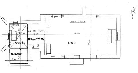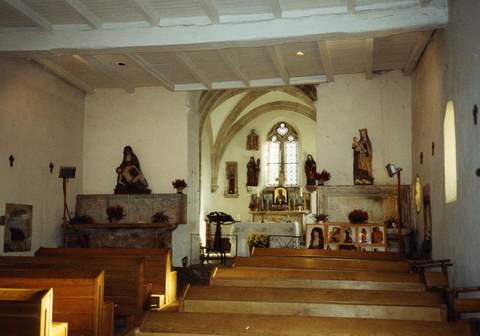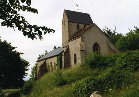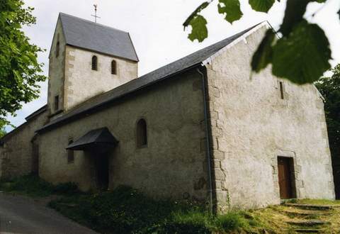 Posée sur un important rocher, l’église maintenant placée sous le vocable de saint Roch est l’ancienne chapelle castrale des seigneurs d’Uchon. Les armes royales de France composées de trois fleurs de lys figurent au-dessus de la fenêtre du clocher. C’est un petit édifice de 21,50 m x 10 m, au plan barlong, très simple. Une nef rectangulaire romane non voûtée se prolonge par une croisée de transept plus étroite qui ouvre, par un large arc doubleau en plein cintre, sur un chœur légèrement oblong à chevet plat accosté d’une sacristie. Le chœur a été construit en 1347 par la reine Jeanne de Navarre, fille de Louis X le Hutin et de Marguerite de Bourgogne; il offre un couvrement intéressant, sur croisée d’ogives, dont les larges arcs sont creusés en cavets et reposent aux angles sur des culs de-lampe. Une large ouverture en lancette à remplage flamboyant éclaire le chevet. Les fenêtres en plein cintre de la nef ont vraisemblablement été agrandies. Le mur pignon de la façade occidentale est percé d’une porte surmontée d’une fenêtre très étroite, mais l’entrée de l’église se fait actuellement par une porte latérale. Un clocher rectangulaire s’élève au-dessus du transept. Il est, comme le reste du bâtiment, couvert d’ardoises et percé au niveau supérieur d’ouvert ures en plein cintre avec abat-sons . D’épais contreforts à glacis soutiennent les murs de la nef et du chœur. L’autel du chœur et ceux de la nef sont décorés d’arcatures gothiques ouvragées. À gauche de l’autel une petite niche à décor gothique renfermait autrefois un reliquaire contenant les restes de saint Sébastien, objet d’importants pèlerinages à la suite des épidémies de peste de 1502 et 1652. La Sauvegarde de l’Art Français a versé une somme de 80 000 F en 1993 pour la reprise du gros œuvre intérieur.