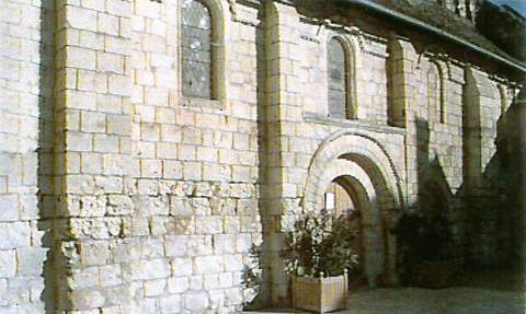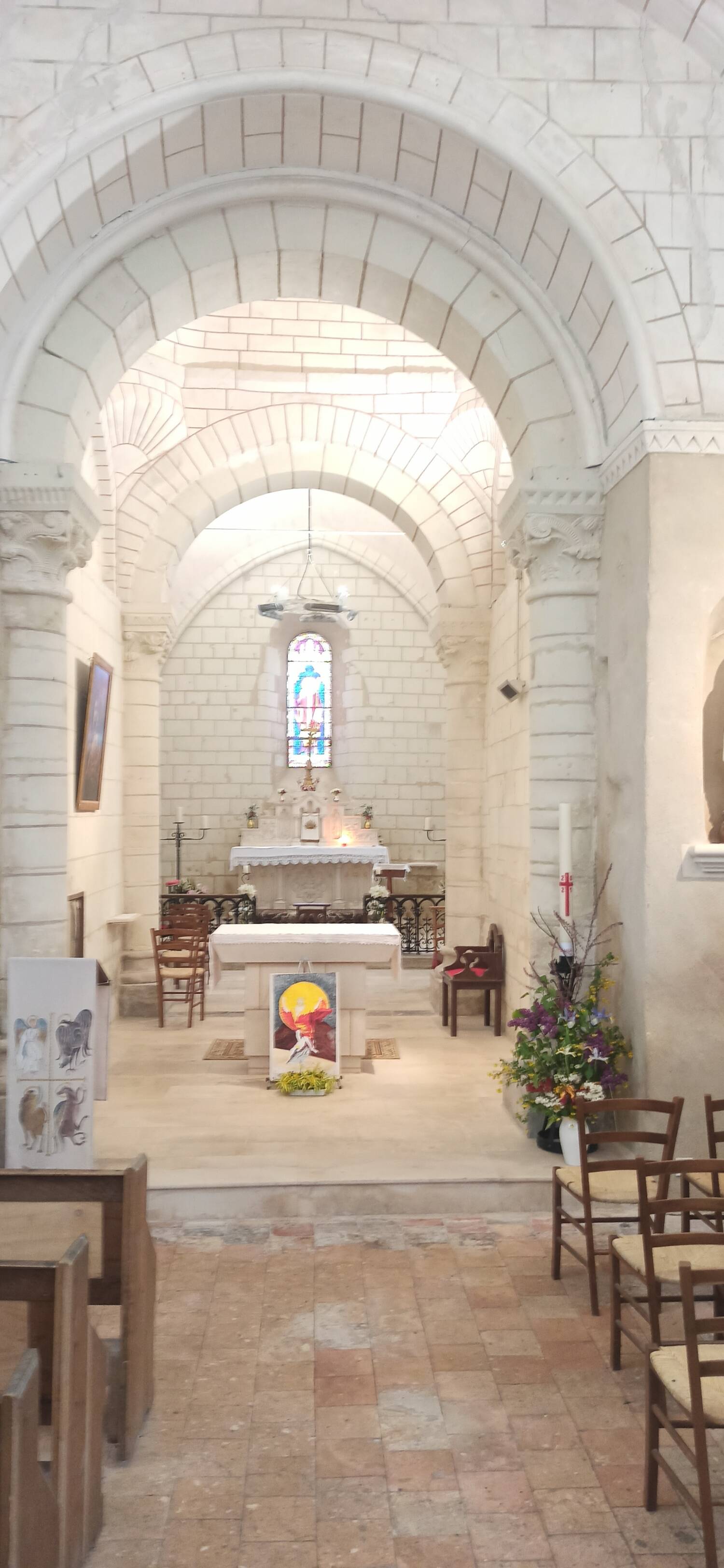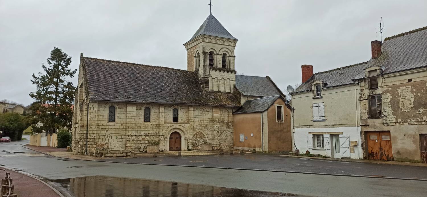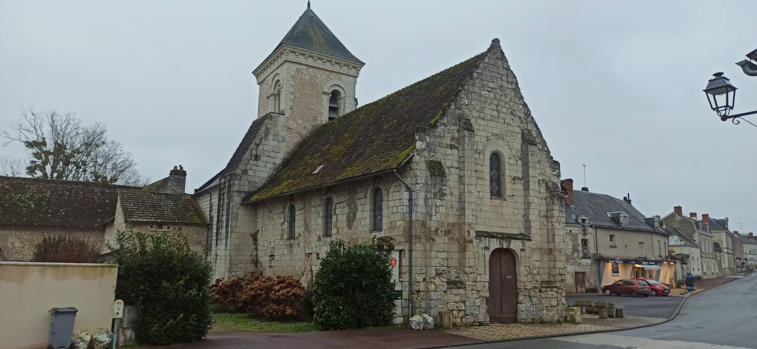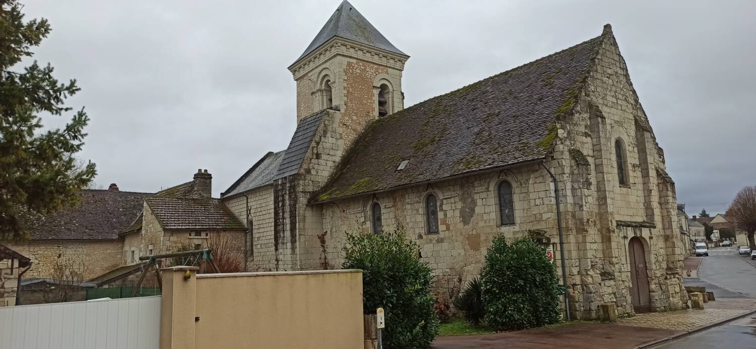 Construite en tuffeau tendre de la région, l’église attire l’attention par la qualité de son appareil, malheureusement très endommagé et rongé par les intempéries. Édifice de plan rectangulaire, à chevet plat, sans bas-côté, l’église se compose d’une nef de trois travées, d’une travée droite de chœur et d’un chœur à chevet plat de plan carré. Un puissant clocher s’élève au-dessus de la travée droite du chœur. De plan carré, il comprend à sa base une série de doubles arcatures aveugles dont les arcs retombent sur des chapiteaux à feuillages. Au-dessus, au niveau du beffroi, le registre supérieur est percé sur chacune de ses faces de deux ouvertures à arc cintré. D’élégantes moulurations soulignent cette composition soignée; on notera, entre autres, les vestiges de colonnes d’angles à double registre. Cependant la corniche à modillons date des travaux du XIXe s., quand le péril a contraint à déposer la haute flèche en pierres, de forme conique. Enfin le rythme élégant des ouvertures qui ornent le côté sud de l’édifice est aussi mis en valeur par la présence de moulurations.
