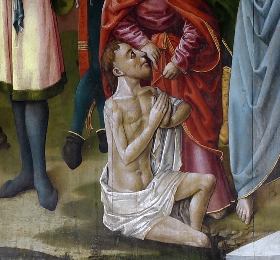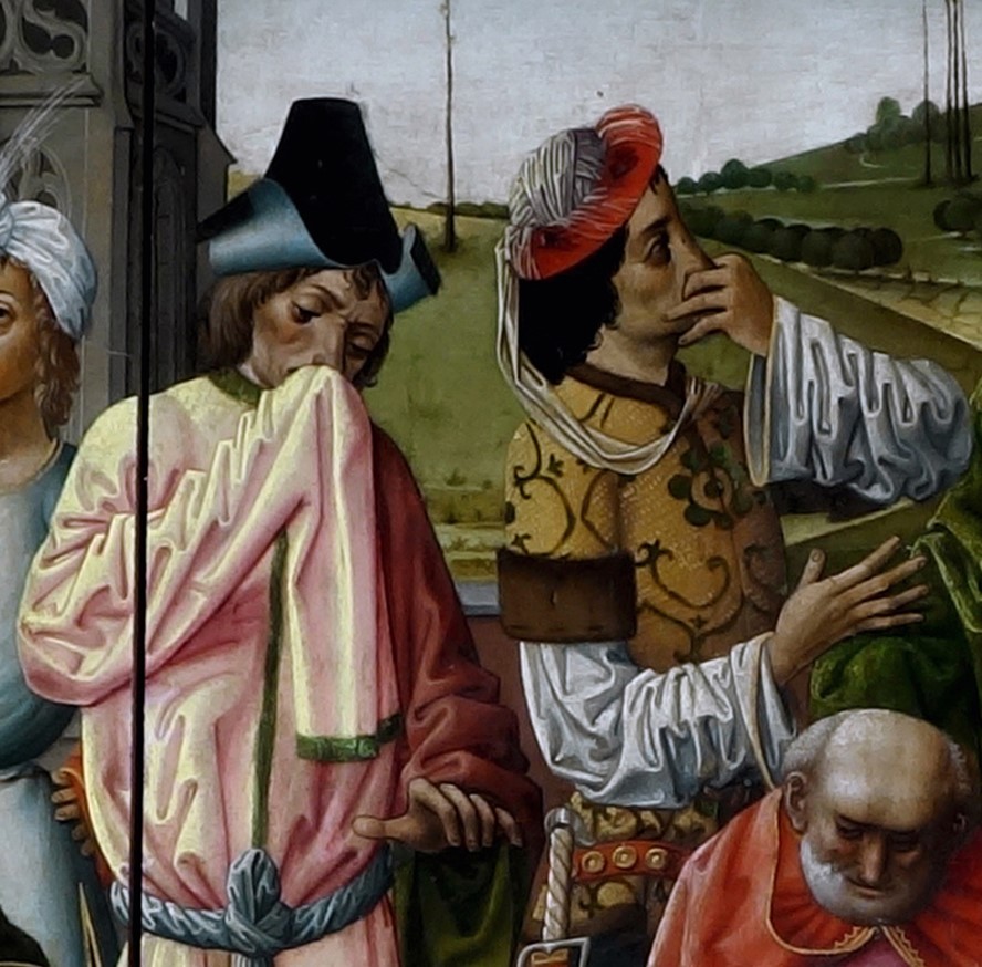 Cet évangile est tiré des écrits de saint Jean. Ce dernier raconte que le cadavre de Lazare sentait déjà très mauvais au moment où le christ lui rendit la vie. Le peintre de cette magnifique œuvre a pris le soin de représenter certains des personnages de la foule se bouchant le nez, tant l’odeur du mort est désagréable.