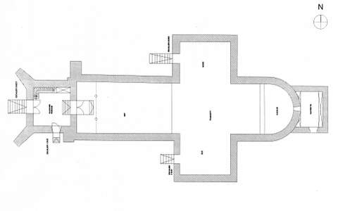 Dans son aspect actuel, l’édifice se compose , d’ouest en est, d’une sorte de narthex, d’une nef rectangulaire, d’un faux transept et d’un chœur orienté, ces deux derniers éléments ayant été construits entre 1840 et 1845 environ.