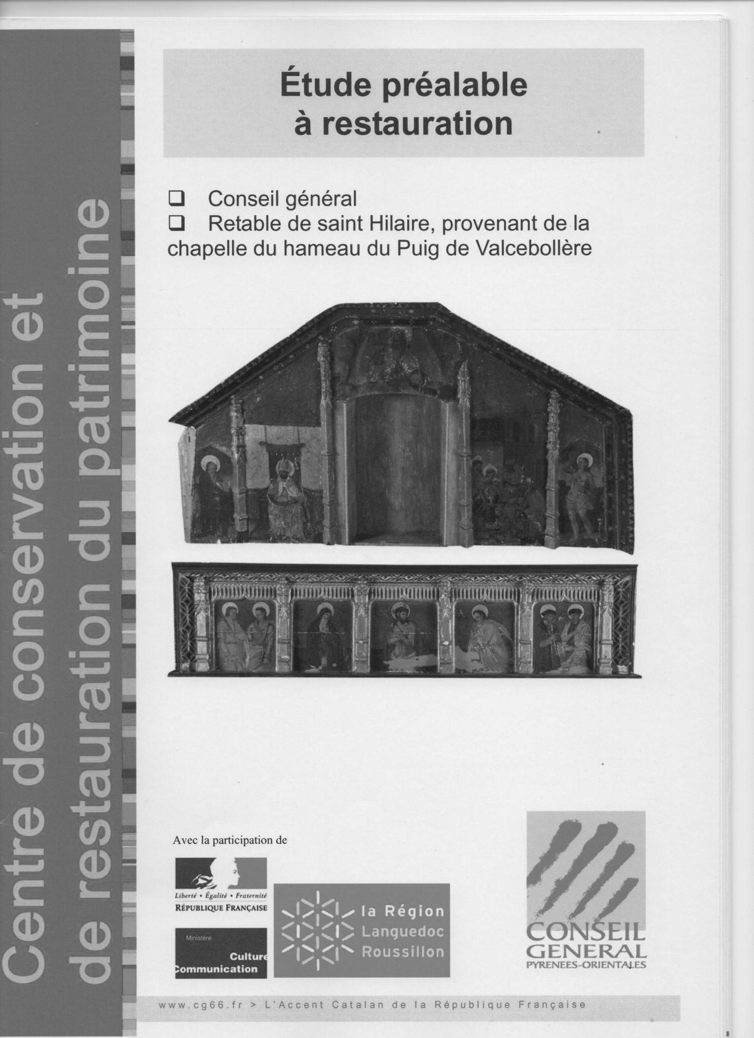 Ce retable situé dans la chapelle Saint-Hilaire du hameau du Puig était la propriété privée d’une famille originaire de Palau de Cerdagne qui possédait également les murs de l’édifice. Le retable fut vendu dans les années 1970 au Département. Lors de son classement en 1933, le retable se trouvait encore dans la chapelle Saint-Hilaire du Puig. Au regard du mauvais état de la chapelle, l’oeuvre fut démontée et déplacée dans la sacristie d’Osséja avant 1935 (date des travaux dans la chapelle). Suite à la restauration de Jaume Llado (années 1970) le retable fut placé dans la chapelle basse du Palais des Rois de Mallorca. Valcebollère est érigé en commune en 1832, après être séparé d’Osséja. Puis en 1972, Valcebollère fusionne avec Osséja, et en 1984 Valcebollère redevient une commune indépendante.