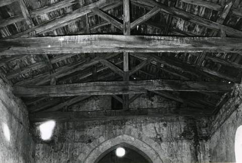 La nef rectangulaire est couverte d’une toiture à charpente apparente datée de l’automne-hiver 1454-1455, par dendrochronologie. Entre le XVIIe et le XIXe s. elle devait être cachée par un plafond lambrissé. Le mur sud est de reconstruction relativement récente (XVIIe-XVIIIe s.). Sur le mur nord, des croix de consécration peintes à l’ocre remontent sans doute au moins aux XVe-XVIe siècles.