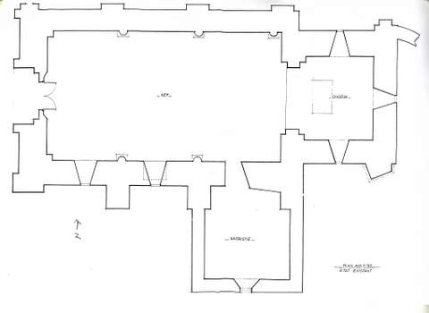 Une dalle du XIIIe s. soutenue par deux piles et portant sur la tranche une suite de petits arcs brisés sert d’autel.