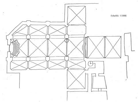 Église paroissiale. l’église de Valensole domine le bourg de sa masse imposante, surprenante pour une simple église paroissiale (longueur : 44 m, largeur : 17 m, hauteur sous voûtes : 25 m environ). Son importance s’explique par le fait qu’elle était le siège d’un prieuré de l’abbaye de Cluny. Valensole se prévaut en effet d’être la patrie de saint Mayeul, son illustre abbé. Une chapelle castrale avait été élevée au Xe s. sur la colline et dédiée à saint Maxime, évêque de Riez, diocèse dont Valensole faisait partie. A la demande du successeur de Mayeul, saint Odilon, l’évêque Almerade reconnut, vers 1010, la libre possession de l’église et du monastère établi auprès d’elle aux moines clunisiens. Saint-Maxime fut remplacée au XIIe s. par une nouvelle église, dédiée à saint Denis. Cette église modeste existe encore, assez malmenée, contre le flanc sud du chœur de la grande église dont elle sert de vestibule vers la « cour du Doyenné». Sous la poussée démographique, la population de Valensole et l’abbé de Cluny s’accordèrent pour construire une nouvelle église de dimensions plus vastes, qui fut placée sous le vocable de saint Blaise.