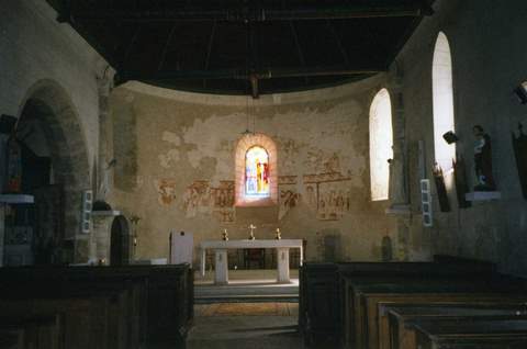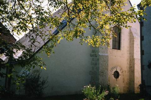 Église Saint-Pierre-et-Saint-Paul est un édifice roman qui a subi quelques modifications consécutives à la destruction partielle du village lors de la guerre de 1870. La nef orientée est terminée par une abside semi-circulaire et accolée, au nord, d’un bas-côté. L’accès se situe dans la partie sud-ouest de la nef, protégé par un long auvent. Une sacristie a été bâtie en hors-œuvre et communique directement, au sud, avec l’abside. Le collatéral ouvre sur la nef par deux grandes arcades. À l’entrée du chœur, se dressent deux colonnes à chapiteaux primitifs destinées à recevoir un arc qui n’a vraisemblablement jamais été réalisé. La nef et le chœur sont couverts d’ une voûte lambrissée. Deux baies en arc brisé éclairent la nef au sud. Les fenêtres de l’abside et du collatéral sont en plein cintre. Le pignon ouest comprend également une baie en plein cintre. Sur ce versant de l’église, l’arc de l’ancien portail, aujourd’hui muré, est encore visible. Un oculus a été percé dans sa partie supérieure. La couverture est en ardoise ainsi que le clocher, érigé sur la partie occidentale de la toiture. À l’intérieur, le décor est surtout remarquable pour les peintures murales des XIIe et XIIIe s. qui ont été découvertes en 1939, derrière le retable du sanctuaire, par l’abbé Moriceau, curé de la paroisse. Certaines d’entre elles sont illisibles, d’autres ont pu être parfaitement identifiées. Ce sont les scènes figurant la Descente de croix, les Saintes Femmes au Tombeau, le Baptême du Christ, le Repas chez Hérode. À l’instar de celles de l’église de Lutz-en-Dunois et de la chapelle d’Yron à Cloyes, ces peintures murales sont caractéristiques de la création artistique de la haute vallée du Loir à l’époque romane. Pour la réfection des enduits et l’assainissement de la façade sud de l’église et du porche, la Sauvegarde de l’Art français a accordé une subvention de 35 000 F en 1998.