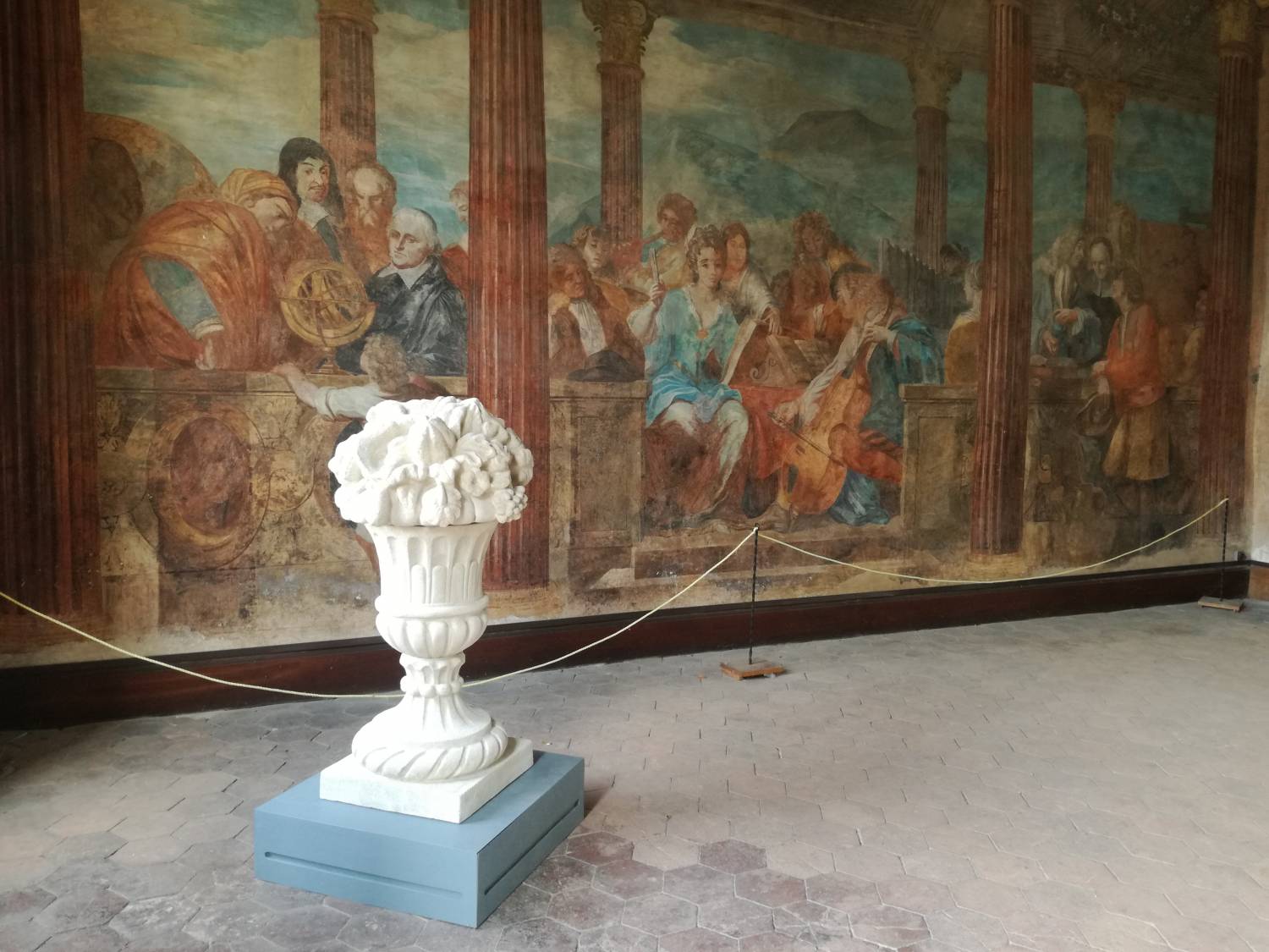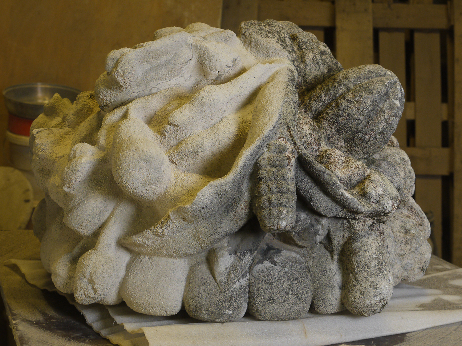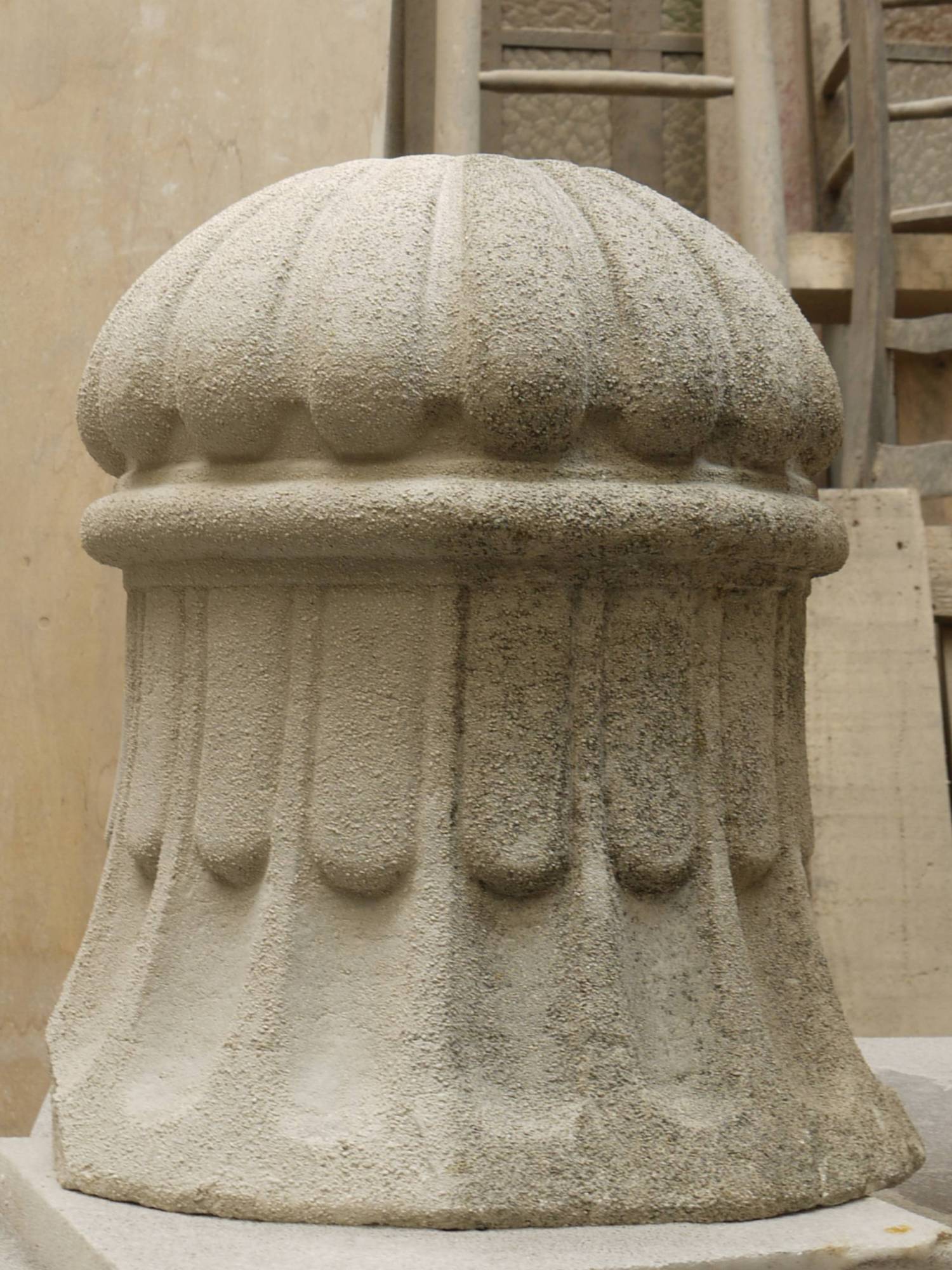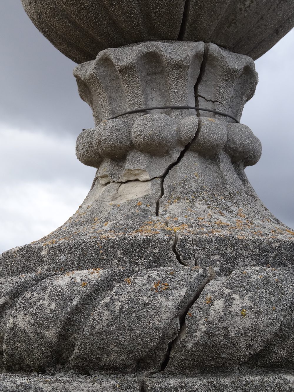 » Notre choix de restauration s’est porté sur une sculpture très endommagée représentant un vase Médicis surmonté de fleurs et de fruits. Le vase est fendu et tient encore grâce à quelques fils de fer, des morceaux de pierre sont manquants. Un nettoyage du piédestal et du vase est nécessaire, ainsi qu’un collage des fragments, un remplacement du goujon, des comblements et retouches et enfin l’application d’un hydrofuge ou oléofuge pour protéger l’œuvre d’éventuelles dégradations postérieures. La DRAC soutient activement notre projet.