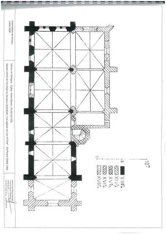 L’église paroissiale Notre-Dame de Vernou-en-Sologne, à 15 km au nord de Romorantin, se dresse au milieu d’un village typique du centre de la Sologne, avec ses maisons basses en brique entourées de bois, de landes et d’étangs.L’édifice apparaît dans les textes en 1130, date de sa concession par l’évêque d’Orléans à l’abbaye de Saint-Mesmin. C’est une importante construction du XIIIe s. dont les voûtes ont toutefois été remontées à diverses époques, flanquée au sud d’un collatéral datant du second tiers du XVIe siècle. L’église a subi une restauration d’envergure en 1896, œuvre d’A. Chauvallon, architecte à Romorantin.