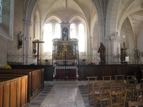 À l’intérieur, le maître-autel a conservé un retable du XVIIe s. qui proviendrait de l’église des capucins de Romorantin ; il est orné d’une Vierge à l’Enfant du XIVe s., fortement repeinte. On remarque aussi une belle clôture de chœur en fer forgé de la fin du XVIIIe s., ainsi qu’un lutrin et une grille de communion, datée de 1790.