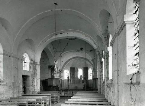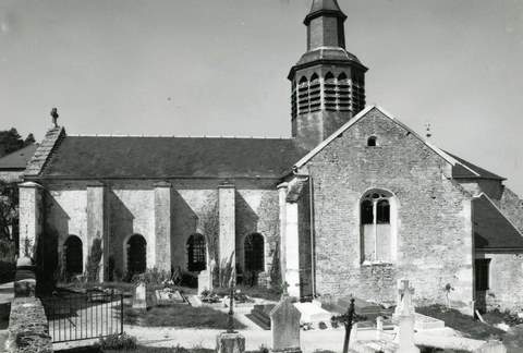 Église paroissiale. Il y a quelques années, cette grande et assez belle église semblait vouée à la ruine, la population de la commune ne comptant que 77 habitants et les municipalités successives s’en étant entièrement désintéressées. Mais notre actif délégué régional, Monsieur le Chanoine Jean Marilier, nous a fait connaître l’intérêt porté au monument par la municipalité actuelle ainsi que par un certain nombre d’habitants. Nous ne pouvons que nous en réjouir. Dans un long rapport, en effet, notre délégué a exposé pourquoi ce monument méritait de survivre. Une grande partie des murs goutterots remontent au xiie s. Le transept est une heureuse addition du milieu du xvie s. Dans le bras sud de ce transept, on a découvert assez récemment, sous un enduit, une intéressante fresque du temps de la Renaissance, représentant de saints personnages chers aux dévotions populaires (Brigide, Étienne, Roch, Sébastien) en cours de dégagement par les soins de spécialistes de la direction de l’architecture. La nef a été construite de 1782 à 1783 par un architecte parisien qui a su lui donner une architecture de style classique d’excellentes proportions. L’église est encore entourée de son cimetière. Une Vierge à l’Enfant du xiiie s., une Pietà et plusieurs statues anciennes constituent un mobilier particulièrement riche. La Sauvegarde de l’Art français a accordé, en 1979, une subvention de 40 000 F.