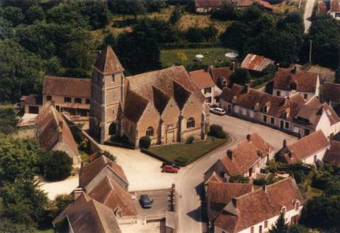 L’église Saint-Blaise et SaintMédard de Vichères dépendait de l’archidiaconé de Chartres dont le titulaire en était le collateur. Situé à flanc de coteau, cet édifice a été bâti au XVe s., agrandi au XVIe s. et remanié au XVIIe siècle. Son plan se caractérise par une nef prolongée par un chœur se terminant par un chevet à trois pans. Tous les angles de l’édifice sont épaulés de contreforts en pierre en forte saillie. Trois chapelles latérales couvertes de toits distincts dessinent au sud un bas-côté dont les trois pignons sont à rampants de pierre. La chapelle centrale est ornée d’un portail d’époque Renaissance qui, selon la légende, aurait constitué l’entrée particulière de la châtelaine de Vichères. Cet arc plein cintre est encadré de colonnes à chapiteaux corinthiens supportant un entablement gravé d’une inscription latine. Le sommet de cette porte monument ale est orné d’un blason bûché tenu par des aigles et surmonté d’un fronton triangulaire flanqué de deux figures agenouillées difficilement identifiables. Un clocher-porche quadrangulaire couvert d’un toit à quatre pans se dresse à l’extrémité ouest de la nef.