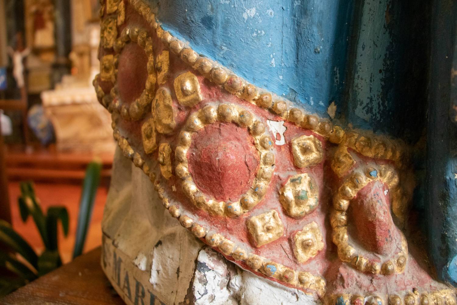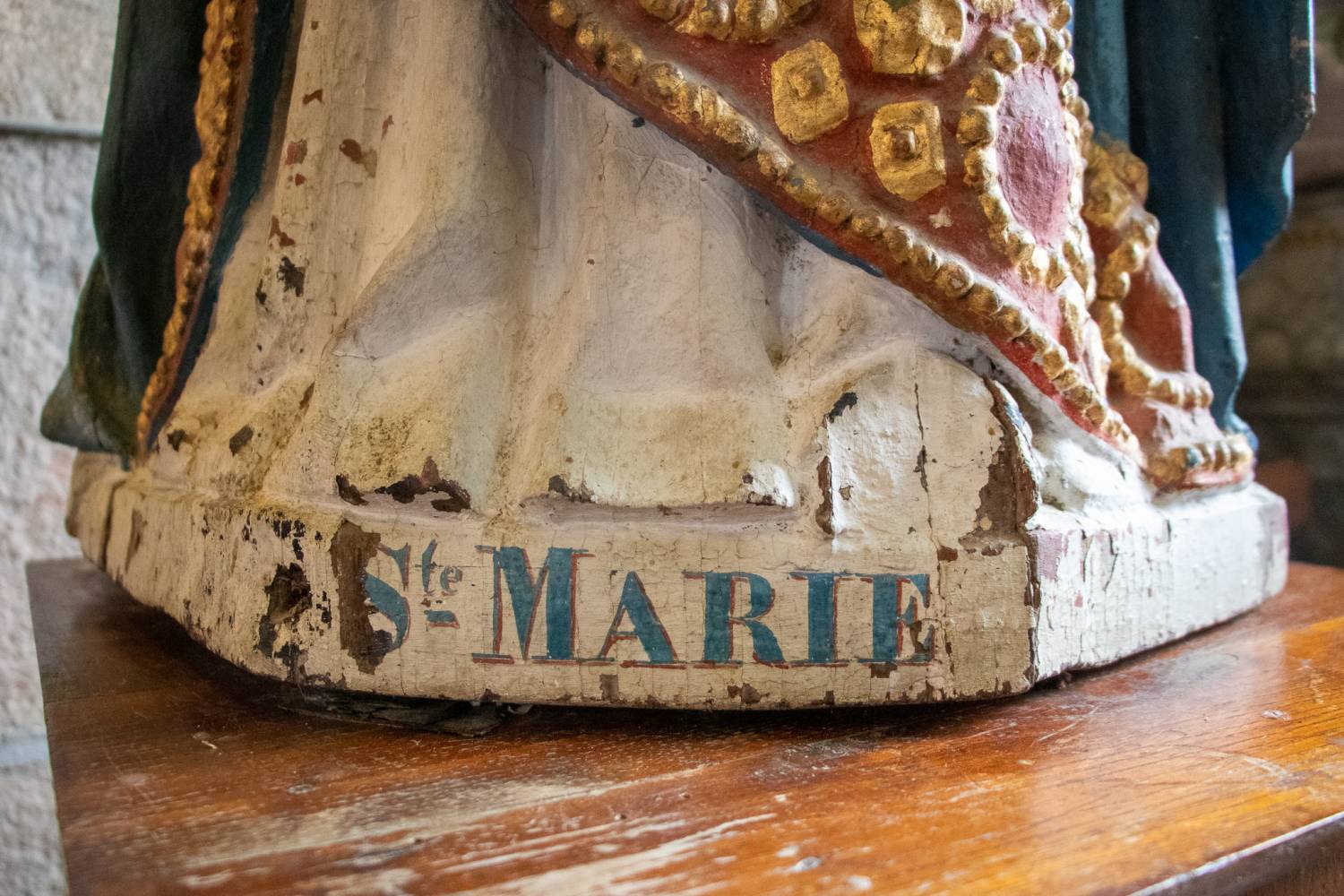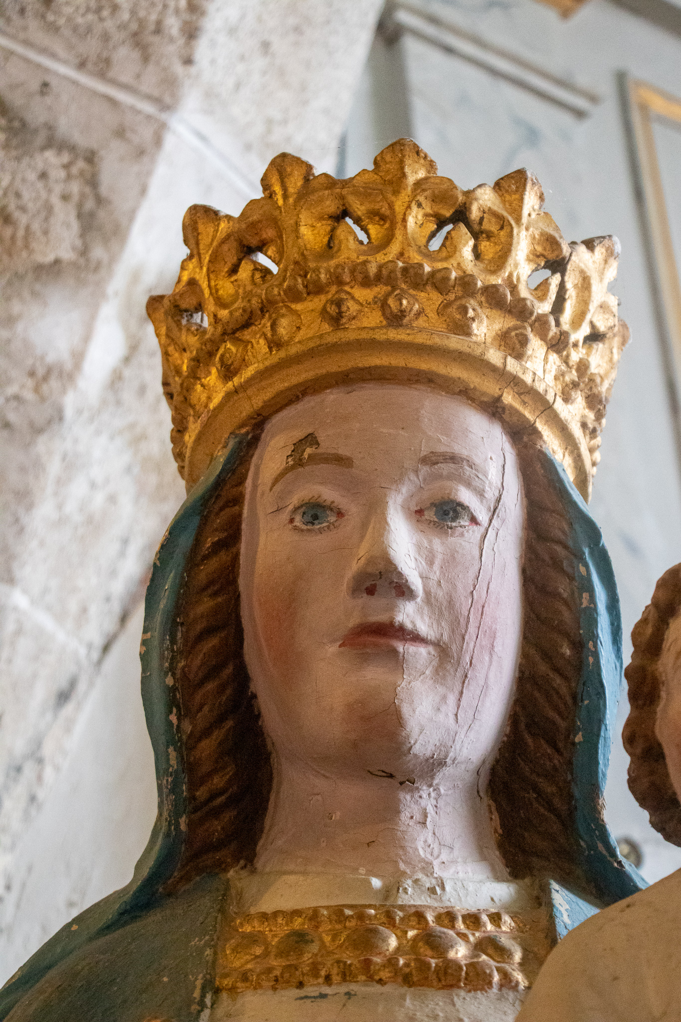 Repeinte à diverses reprises, cette statue revêt désormais une polychromie épaisse et de mauvaise facture qui masque des détails comme la fine chevelure, les détails des vêtements et autres décors sous-jacents. Afin de déterminer un niveau de dégagement éventuel de ces couches, une analyse stratigraphique serait menée préalablement. La commune est consciente de la qualité de son patrimoine, un mécénat serait très important et essentiel, afin de permettre d’engager un programme pluriannuel de restauration de ce riche patrimoine mobilier.