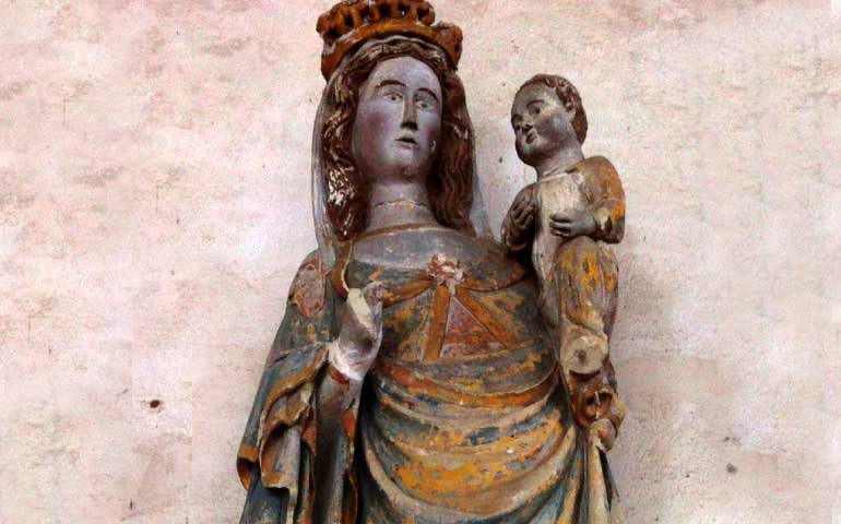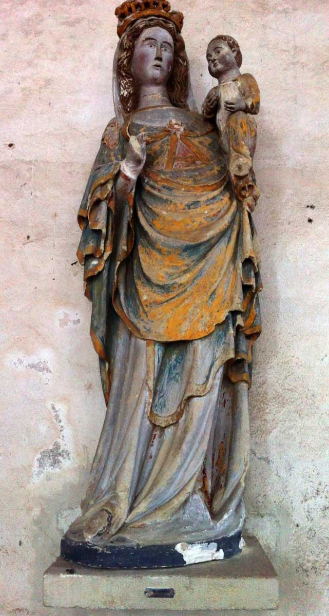 La Vierge hanchée est l’une des cinq statues qui ornent les parois de la nef