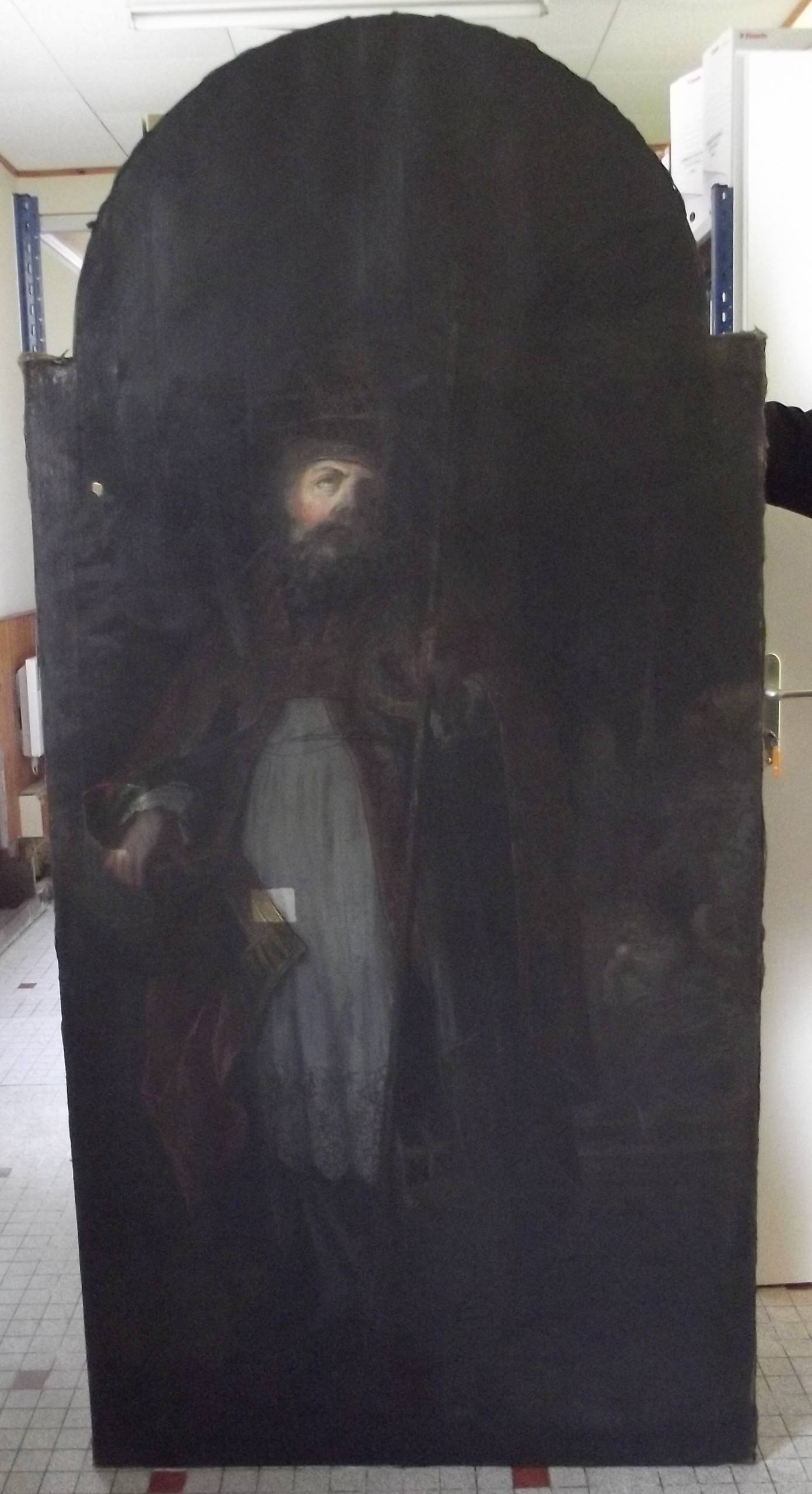 Concernant les œuvres, plusieurs sont inscrites au titre des Monuments historiques. Une paire de très beaux tableaux du XVIIe siècle, représentants pour l’un, la Vierge à l’Enfant et pour l’autre, un saint évêque, représenté avec sa crosse et sa mitre. Ces deux tableaux proviennent des retables latéraux de l’église. L’incendie a fortement endommagé les œuvres, il est impossible de déceler le moindre détail. Une restauration s’impose…