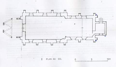 De taille modeste, l’église est à un seul vaisseau. Elle est construite en moellons et rognons de silex sur un soubassement de grès. Pas de voûte mais un simple lambris de couvrement. Le chœur est presque aussi long et large que la nef, disposition d’origine préservée car la nef n’a jamais eu besoin d’être agrandie. L’édifice peut être daté du XIIIe s. dans son plan et dans sa structure ; cependant l’élévation extérieure de la nef témoigne, par sa régularité et son style, d’un remaniement du XIXe siècle : grandes fenêtres en plein cintre, chaînes et contreforts soulignés de brique rouge. Le chœur à chevet plat a été moins touché et le mur ouest a heureusement conservé son magnifique porche à claire-voie du XVIe siècle. Le toit à longs pans, couvert d’ardoises, intègre, sur la première travée de la nef, un élégant clocher de charpente dont la flèche polygonale s’élève au-dessus de trois abat-sons.
