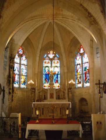L’abside Renaissance est précédée d’un chœur de deux travées, dont celle de l’ouest appartient à l’église romane. L’ensemble est voûté de grosses ogives à boudins. Les cinq pans sont percés de fenêtres en arc brisé qui ont encore leurs remplages flamboyants.